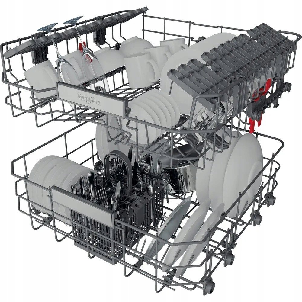 6. ZmysłIntuicyjna technologia 6. Zmysł zapewnia idealne rezultaty zmywania, jednocześnie obniżając zużycie wody i zmniejszając koszty. Czujniki technologii 6. Zmysł wykrywają poziom zabrudzenia naczyń, aby odpowiednio dostosować temperaturę, czas i moc zmywania.NaturalDryAutomatyczne otwieranie drzwi zmywarki po zakończeniu programu zapewnia lepsze i bardziej naturalne suszenie naczyń. System ten gwarantuje wyższą efektywność energetyczną i lepsze rezultaty suszenia.14 kompletów naczyńTyle przestrzeni, ile potrzebujesz. W zmywarce Whirlpool zmyjesz 14 różnorodnych kompletów naczyń.MultizoneMożliwość zmywania w wybranym koszu - należy ustawić tę opcję podczas programowania cyklu.Regulowane nogiZmywarka Whirlpool posiada możliwość regulacji nóg, żeby dostosować wysokość urządzenia do potrzeb użytkownika.Przyjazne dla środowiskaPrzyjazna dla środowiska technologia 6. Zmysł posiada inteligentne czujniki, które nieustannie monitorują cykl zmywania i wykrywają stopień zabrudzeń, by dobrać optymalną ilość zasobów. Ciesz się idealnymi rezultatami zmywania i oszczędzaj do 50% energii elektrycznej, wody i czasu.**Porównanie minimalnego i maksymalnego zużycia w programach 6. Zmysł.Zdejmowany górny koszMożliwość wyjęcia górnego kosza w zmywarce sprawia, że nie zabraknie w niej miejsca nawet na naczynia o nietypowych kształtach.Opcja Opóźniony StartPozwala ustawić zmywarkę tak, aby rozpoczynała swój cykl w najdogodniejszym dla Ciebie momencie, oszczędzając czas i energię elektryczną.AquastopElektrozawór blokuje dopływ wody z rury zewnętrznej w przypadku pęknięcia jej wewnętrznego węża. W przypadku pęknięcia woda wycieka przez wąż do dolnej części zmywarki, gdzie specjalny pływak uruchamia alarm i aktywuje Aquastop, wysyłając sygnał do elektrozaworu. Dopływ wody jest zamknięty, a pompa spustowa opróżnia komorę zmywarki.FlexiSpaceZaprojektuj swoją przestrzeń. System koszy modułowych FlexiSpace pozwala na dogodne i łatwe zaaranżowanie przestrzeni w zmywarce.Wnętrze ze stali nierdzewnejWnętrze zmywarki ze stali nierdzewnej sprawia, że naczynia są zawsze błyszczące, a środek urządzenia jest perfekcyjnie czysty.Intuicyjny wyświetlaczCzytelny wyświetlacz pomoże ustawić program zmywania i wybrać opcje.Cicha pracaCicha wydajność. Zmywarkę Whirlpool zaprojektowano tak, aby zapewniała idealne rezultaty zmywania przy jednocześnie możliwie najniższym poziomie hałasu.Klasa energetyczna DTo urządzenie posiada klasę energetyczną D.Elastyczny moduł do ochrony szkłaSpecjalny ruchomy element, który utrzymuje kieliszki do wina w stabilnej pozycji lub też złożony - zapewnia dodatkową przestrzeń na inne naczynia.Elastyczne opcje zmywaniaIdealne zarządzanie przestrzenią. Zwiększaj, zmniejszaj lub modyfikuj przestrzeń wewnątrz zmywarki tak, jak chcesz, dzięki modułowym koszom i składanym elementom.Opcja KapsułkaPozwala wybrać program odpowiedni do zmywania z użyciem detergentu w kapsułkach.Bezpośrednie przyłączenie do ciepłej wodyZmywarka umożliwia bezpośrednie przyłączenie do rury z ciepłą wodą (maksymalnie 60°C).Światło na podłodzeZmywarka Whirlpool wyświetla na podłodze sygnał komunikujący koniec cyklu zmywania.Sygnał dźwiękowy zakończenia cykluZmywarka Whirlpool sygnalizuje dźwiękiem koniec cyklu zmywania.Program SzybkiCiesz się szybkimi rezultatami. Program ten zapewnia moc zmywania, na jakie zasługujesz, w krótkim czasie.Składane elementyZmywarka Whirlpool jest wyposażona w składane elementy, co zwiększa wygodę użytkowania.10 programówWiele możliwości, idealne rezultaty. Zmywarka Whirlpool posiada 10 różnych programów, dzięki czemu zawsze wybierzesz ten, który najbardziej Ci odpowiada.Program IntensywnyProgram zmywania w temperaturze 65°C idealny do najbrudniejszych naczyń, rekomendowany do zmywania patelni i garnków.Zewnętrzne zabezpieczenie wodyZewnętrzne zabezpieczenie wody, wbudowane w rurę dopływu, chroni przed wyciekiem wody w razie niespodziewanej awarii.