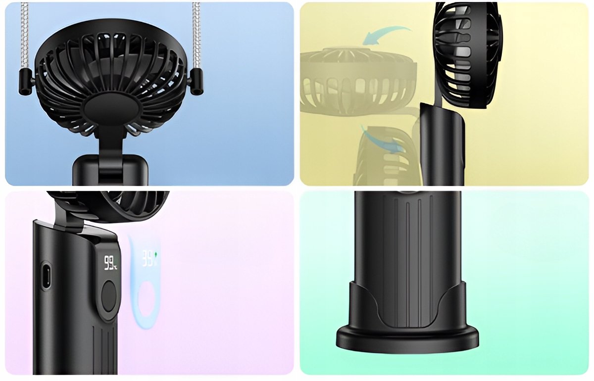Mini wentylator 3w1 wiatrak biurkowy ręczny obrotowy 180° TOPK K38 2400mAh