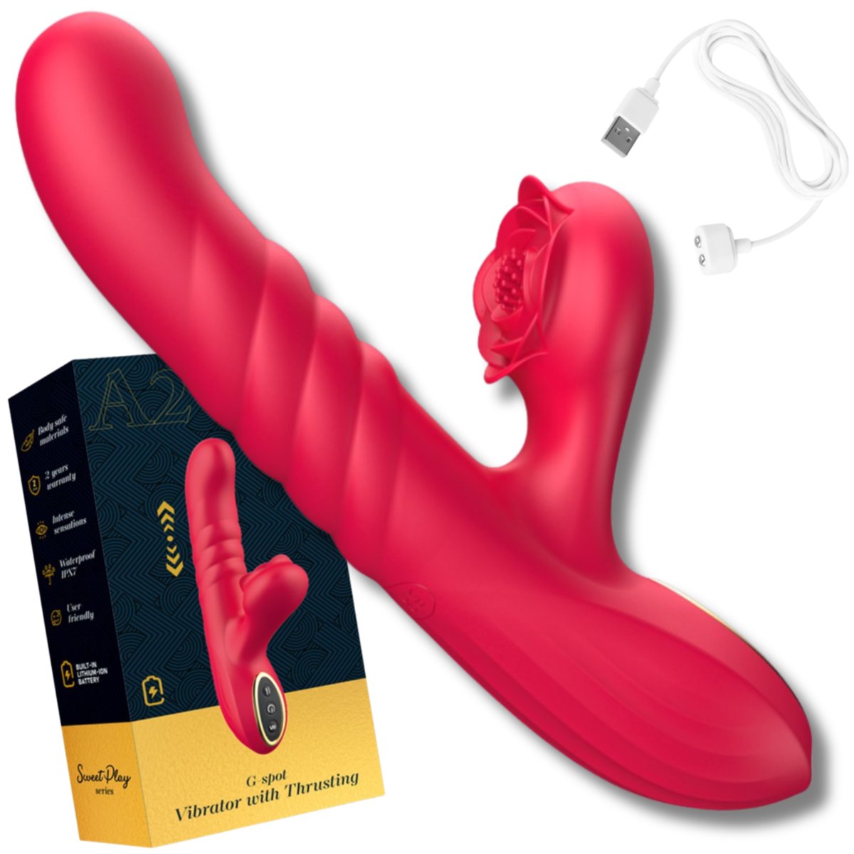 WIBRATOR DAMSKI POSUWISTY PULSUJĄCY MASAŻER ŁECHTACZKI 7 TRYBÓW WIBRACJI ✅ Trzy funkcje – jedno intensywne spełnienieWibrator A2 to mistrz wielozadaniowości. Łączy ruch posuwisty wewnątrz pochwy, intensywne wibracje i stymulację łechtaczki wypustką w kształcie róży. To trio działa synchronicznie lub niezależnie – jak chcesz i kiedy chcesz. Efekt? Pełne rozluźnienie, wiele orgazmów i przyjemność, która nie zna granic.Co oferuje A2:7 trybów wibracji i ruchu posuwistegoWibrująca wypustka do masażu łechtaczkiJednoczesna stymulacja wewnętrzna i zewnętrznaRytmiczne pchnięcia + drżenie róży = intensywne doznania