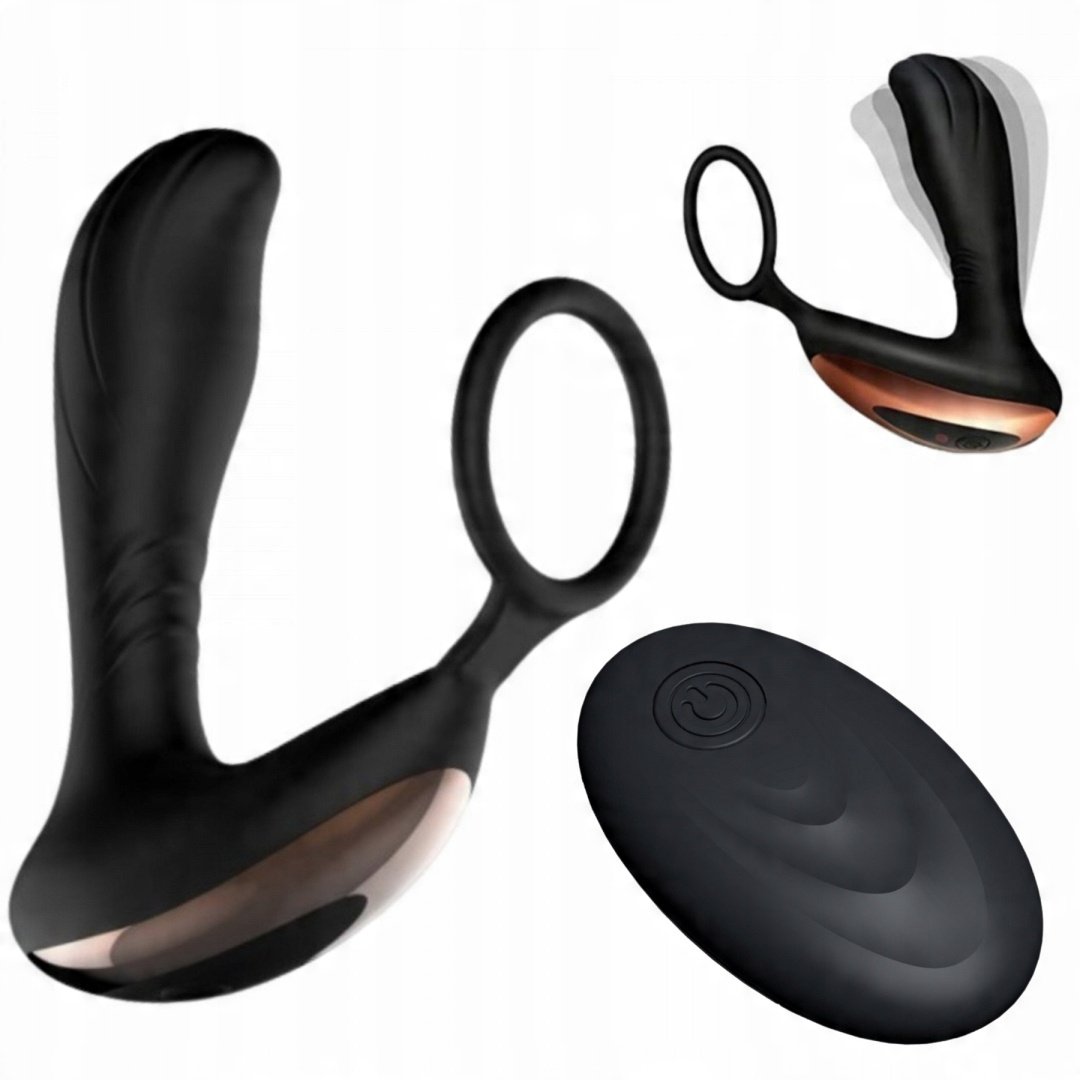 MASAŻER PROSTATY Z BEZPRZEWODOWYM PILOTEM ORAZ PIERŚCIENIEM NA JĄDRA