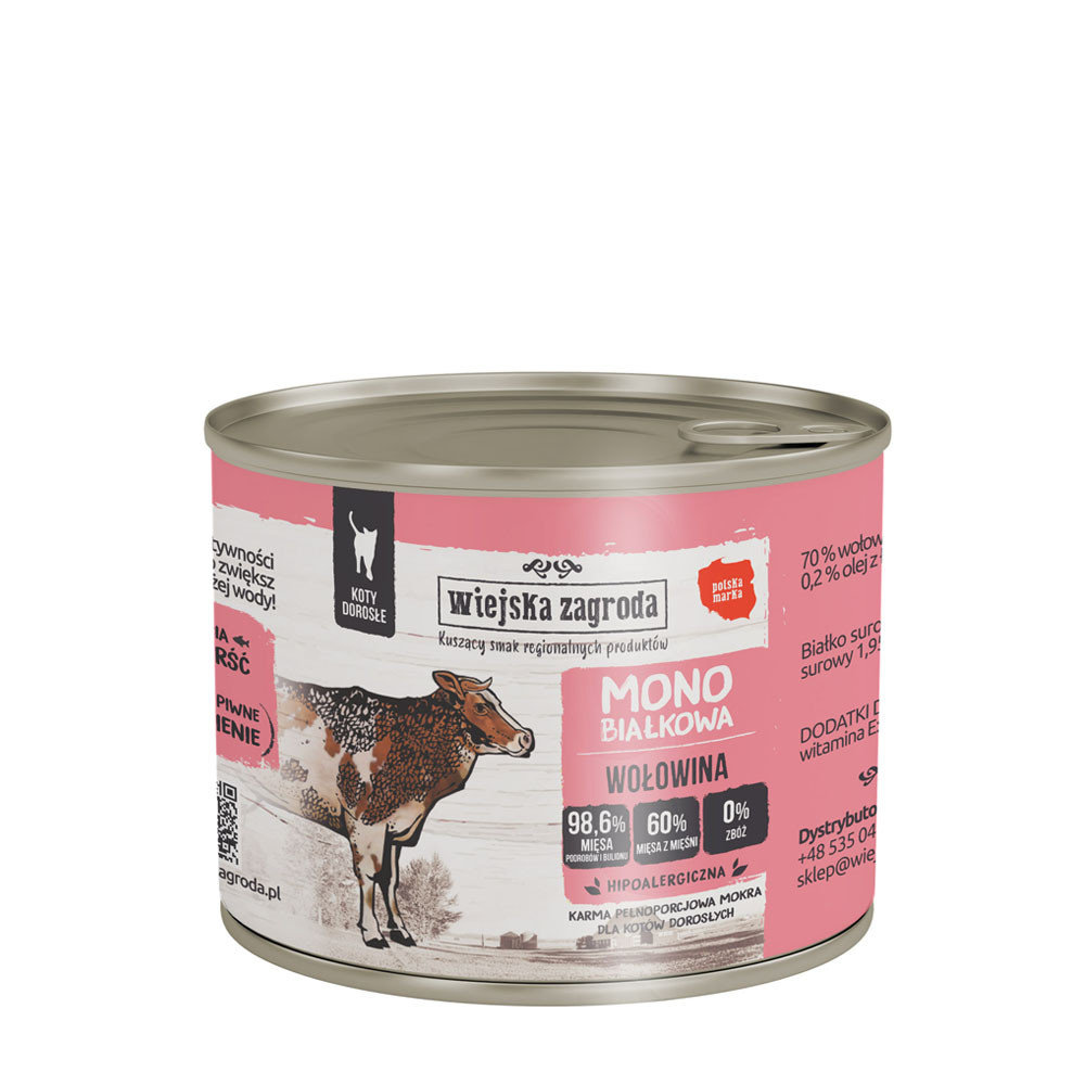 | Nazwa: | Wiejska Zagroda Mokra karma Monobiałkowa dla kotów Wołowina 200g |
