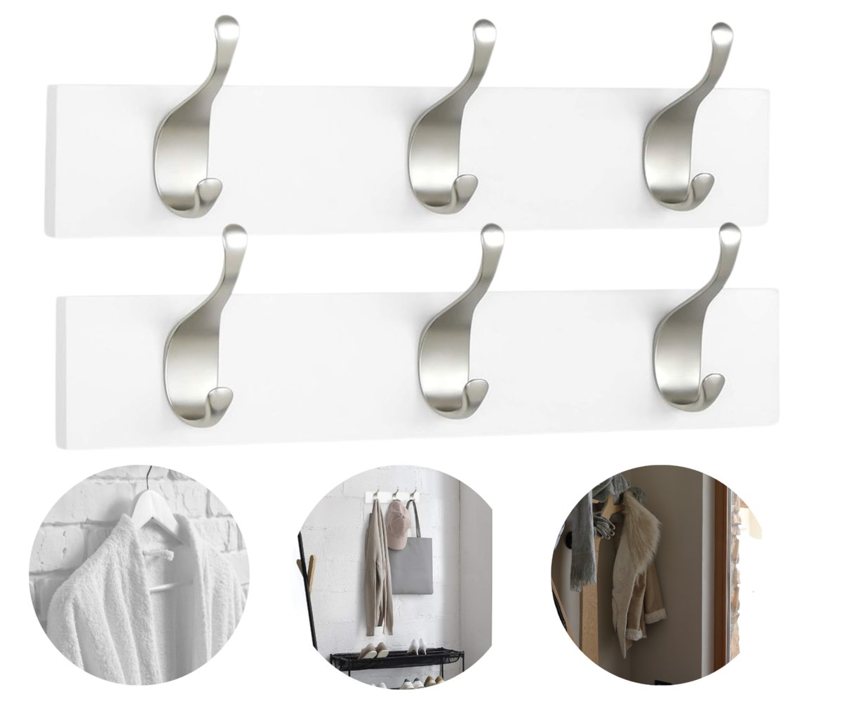 ✅ 2 x Wieszak ścienny z metalowymi 3 hakami.
