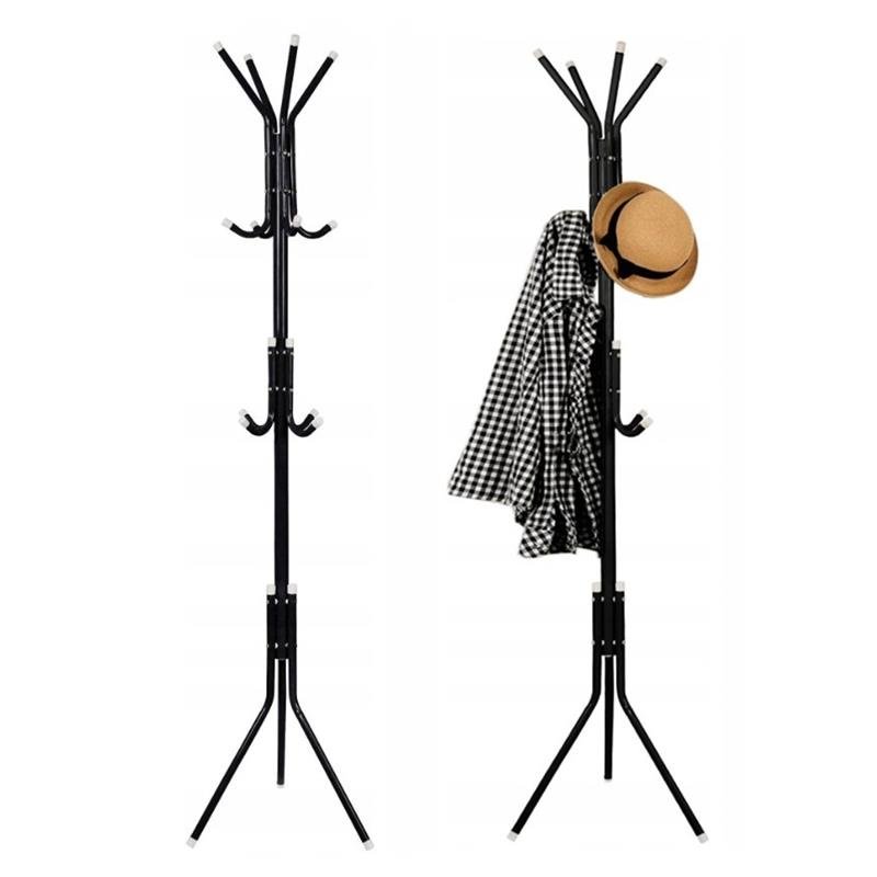 Konstrukcja i proste rozłożenie ramion sprawia, że wieszak przykuwa uwagę swoim ciekawym designem. Model ma aż 12 ergonomicznych ramion, dzięki czemu pomieści dużo odzieży, kapeluszy czy parasoli. Dzięki ochronnym nakładkom na nogi wieszak jest stabilny i nie rysuje podłogi. Haczyki umieszczono na różnej wysokości, dzięki czemu z wieszaka samodzielnie i bez problemu skorzystają także dzieci. Uniwersalny czarny kolor sprawia, że model pasuje do każdego wnętrza. Idealnie wkomponuje się w nowocześnie zaaranżowane pomieszczenia w stylu loftowym i tradycyjnym. Wieszak idealnie sprawdzi się w Twoim domu, biurze czy poczekalni.