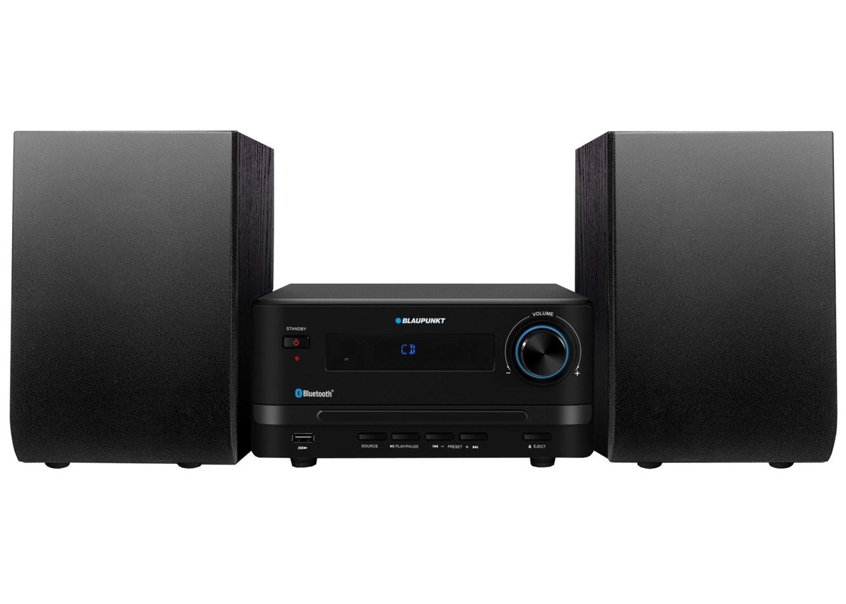 Model MS14BT marki Blaupunkt, wyposażony w funkcję Bluetooth, umożliwia odtwarzanie utworów zapisanych na smartfonie, laptopie lub tych dostępnych w serwisach internetowych.