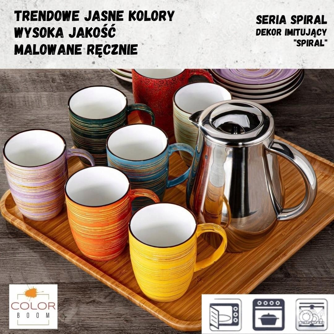 Wszystkie produkty z kolekcji COLORBOOM wykonane są z porcelany pokrytej warstwą kolorowego szkliwa. Jednocześnie szkliwo pokrywane jest ręcznie, dzięki czemu każde danie, każdy talerz z kolekcji COLORBOOM jest niepowtarzalny i niepowtarzalny. Naczynia z kolekcji COLORBOOM można myć w zmywarkach, mikrofalówkach i piekarnikach.