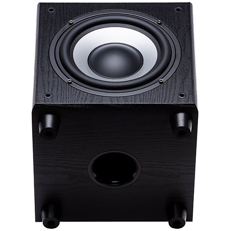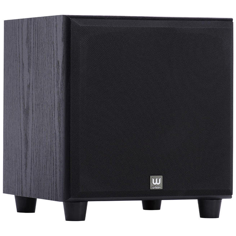 Niewielki i elegancki subwoofer aktywny Wilson SUB 9 w kolorze czarnym.
