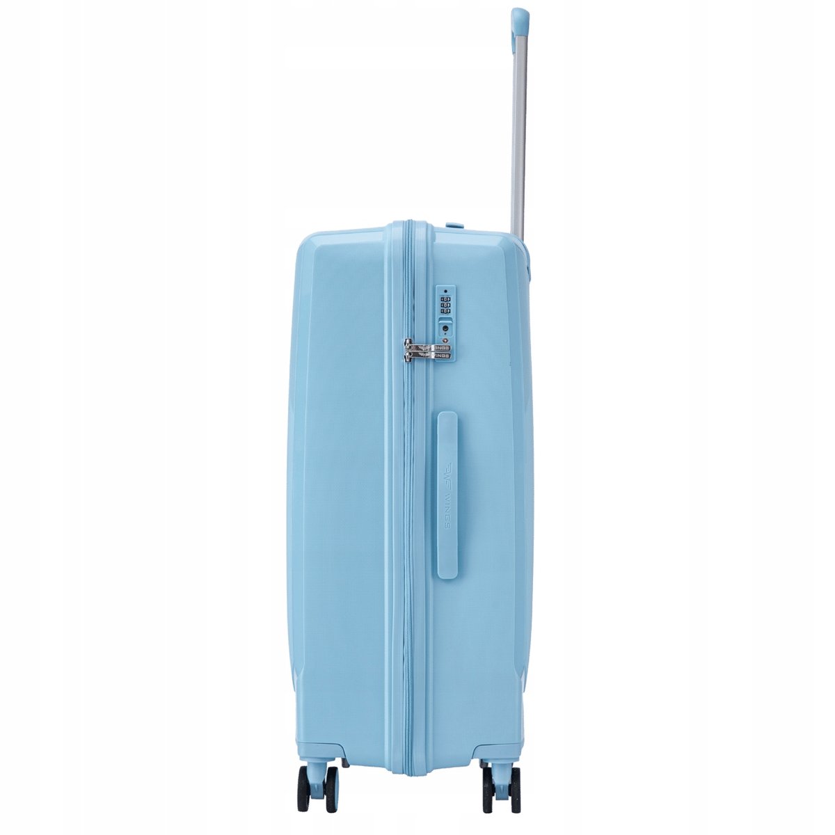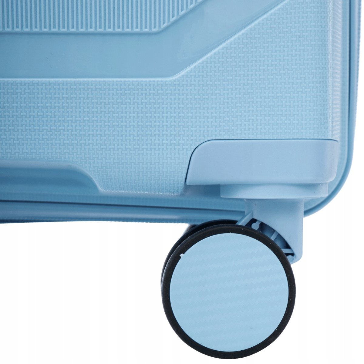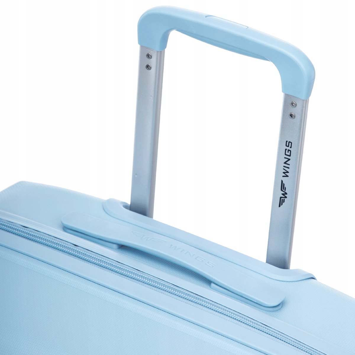 Seria walizek COCKATIEL jest kompozycyjnie spójna z marką WINGS. Każdy element zewnętrzny, w tym kółka, zamki, nóżki oraz teleskopowa rączka, jest dostosowany kolorystycznie, tworząc spójny wizerunek. Walizki wykonane są z polipropylenu, co zapewnia ich wysoką odporność na uszkodzenia mechaniczne.