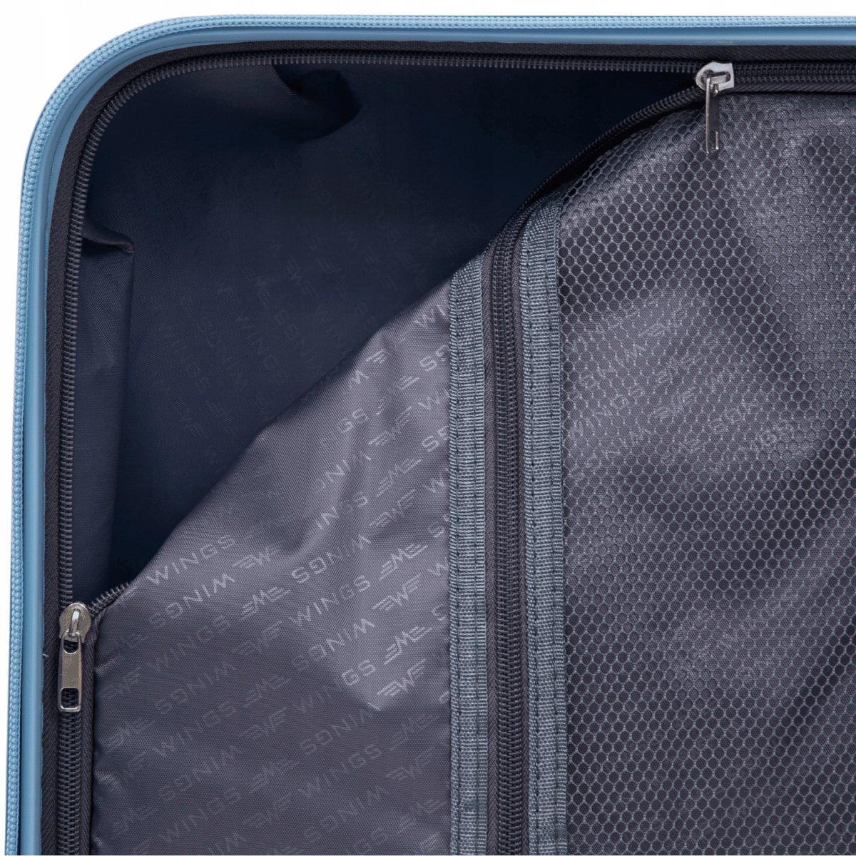 Wnętrze każdej walizki z linii COCKATIEL jest starannie zaprojektowane, aby łączyć funkcjonalność z estetyką. Ekskluzywny charakter podkreśla podszewka, która jest sygnowana logotypami WINGS, co nadaje wnętrzu wyjątkowego wyglądu. Ponadto, w przemyślanym układzie wnętrza znajduje się praktyczna kieszeń, idealnie nadająca się do przechowywania drobnych akcesoriów podróżnych takich jak dokumenty, ładowarki, słuchawki czy kosmetyki.