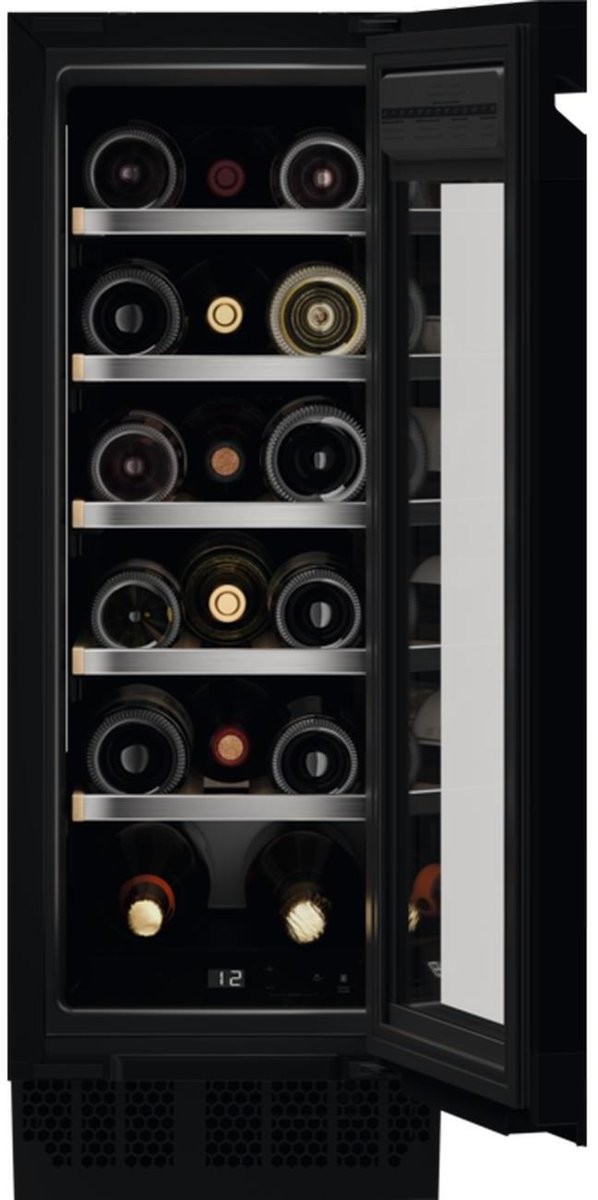 Winiarka do zabudowy o pojemności użytkowej 56 l (mieści 18 butelek ), w klasie efektywności energetycznej G. Wewnętrzne oświetlenie LED. Witryna ELECTROLUX EWUS018B7B 923 421 260 wyposażona została w 5 półek.
