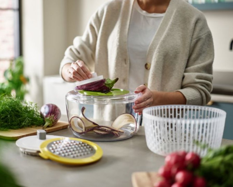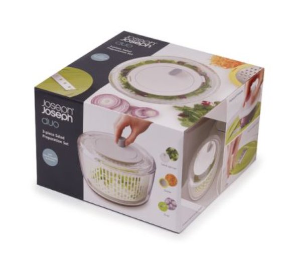 Wirówka 3w1 Duo Joseph Joseph to wszechstronne narzędzie kuchenne, które znacząco ułatwia przygotowanie świeżych sałatek i innych potraw.