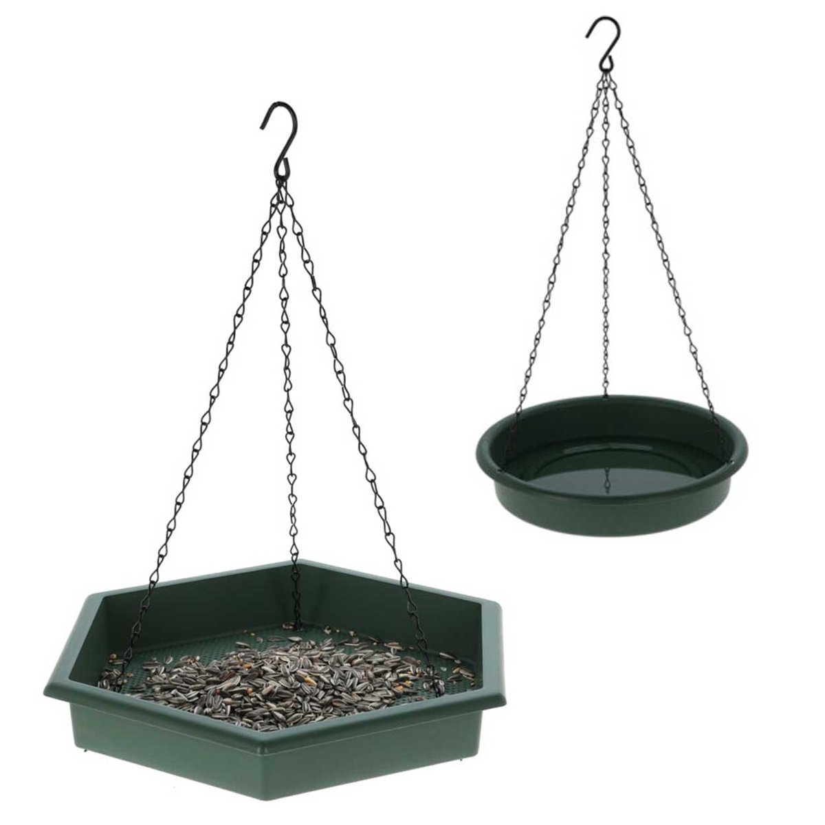 - dwa kształty – heksagonalny karmnik z otworami odprowadzającymi wodę i okrągła wanienka dla ptaków,