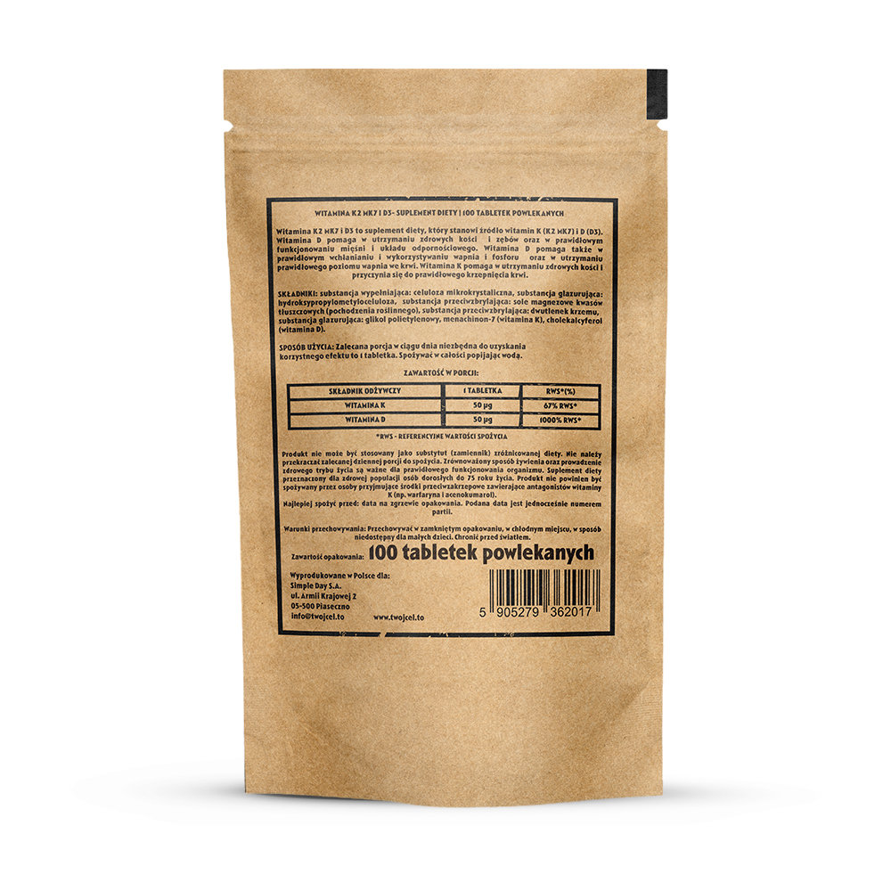 | Nazwa: | Witamina K2 MK7 + D3 - mocne kości i odporność. 100 tabletek. |