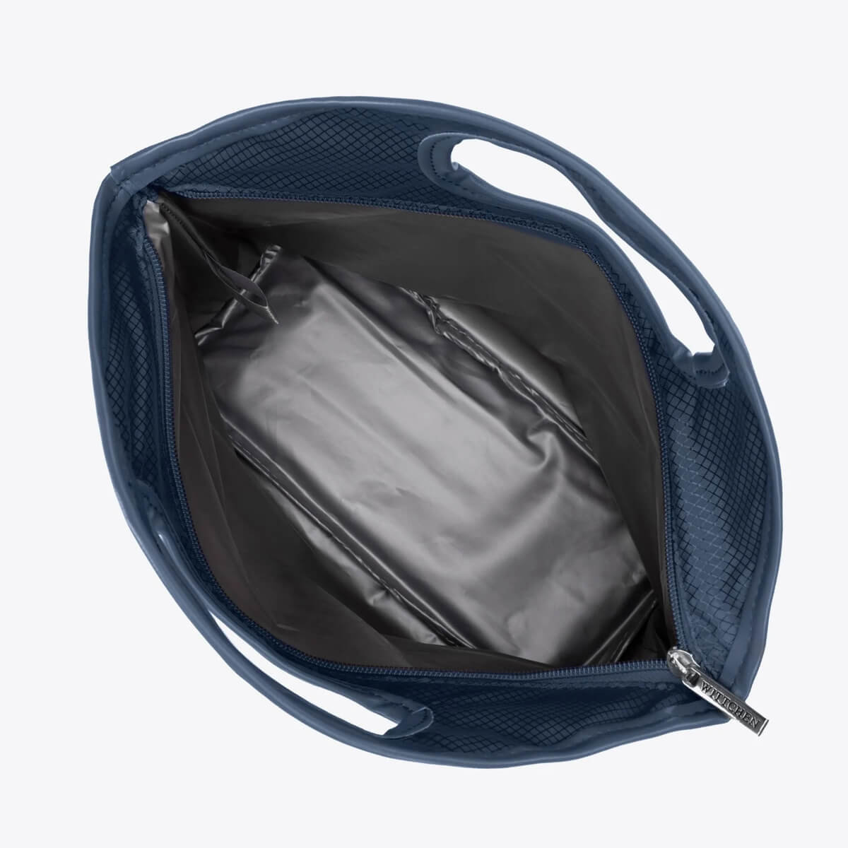 Praktyczna i estetyczna torba marki Wittchen, przeznaczona do przenoszenia posiłków. Jej eleganckie wnętrze nie tylko pomieści kilka różnych pudełek czy słoików, ale także, dzięki warstwie termoizolacyjnej podszytej podszewką odporną na wilgoć, utrzyma ich zawartość w odpowiedniej temperaturze.
