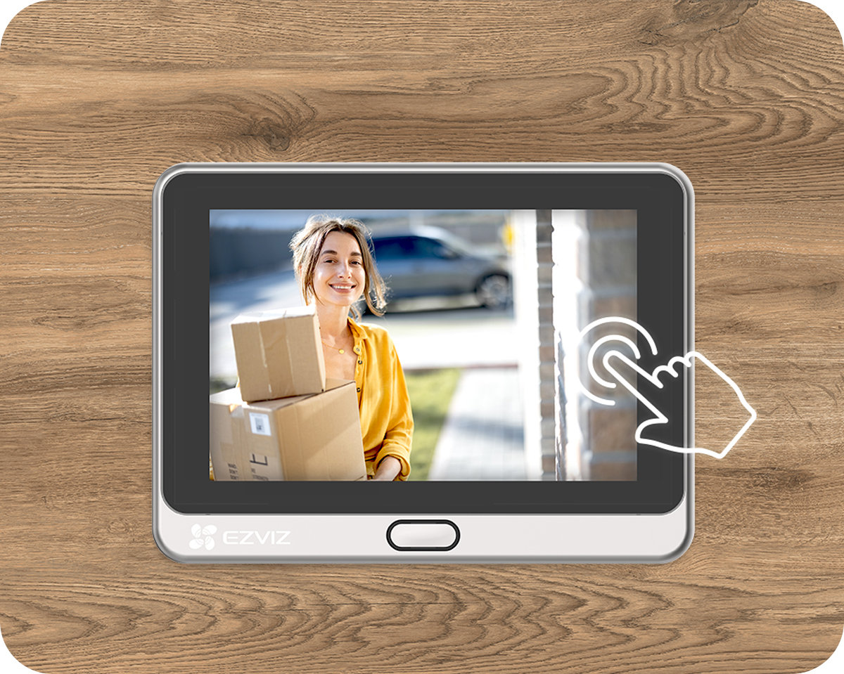 Można sprawdzić, kto czeka przed drzwiami, korzystając z wewnętrznego monitora dotykowego lub aplikacji EZVIZ. Wystarczy kilka dotknięć na małym lub dużym ekranie, aby wyświetlić szczegółowy obraz o wysokiej jakości. Można też wybrać dźwięk gongu i rozmawiać z osobami stojącymi przed drzwiami. Ochronę ułatwiają alerty wyzwalane przez zdarzenia, informujące o wszystkich ważnych zdarzeniach.