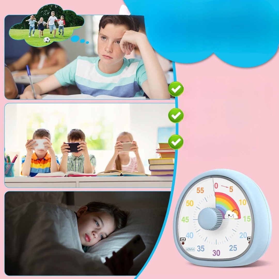 ➡️ Kolorowy wizualny wskaźnik odliczania sprawia, że dzieci lepiej rozumieją upływ czasu. Tęcza stopniowo się zmniejsza, co pomaga w zarządzaniu czasem i buduje dobre nawyki. To doskonałe narzędzie do nauki samodyscypliny!