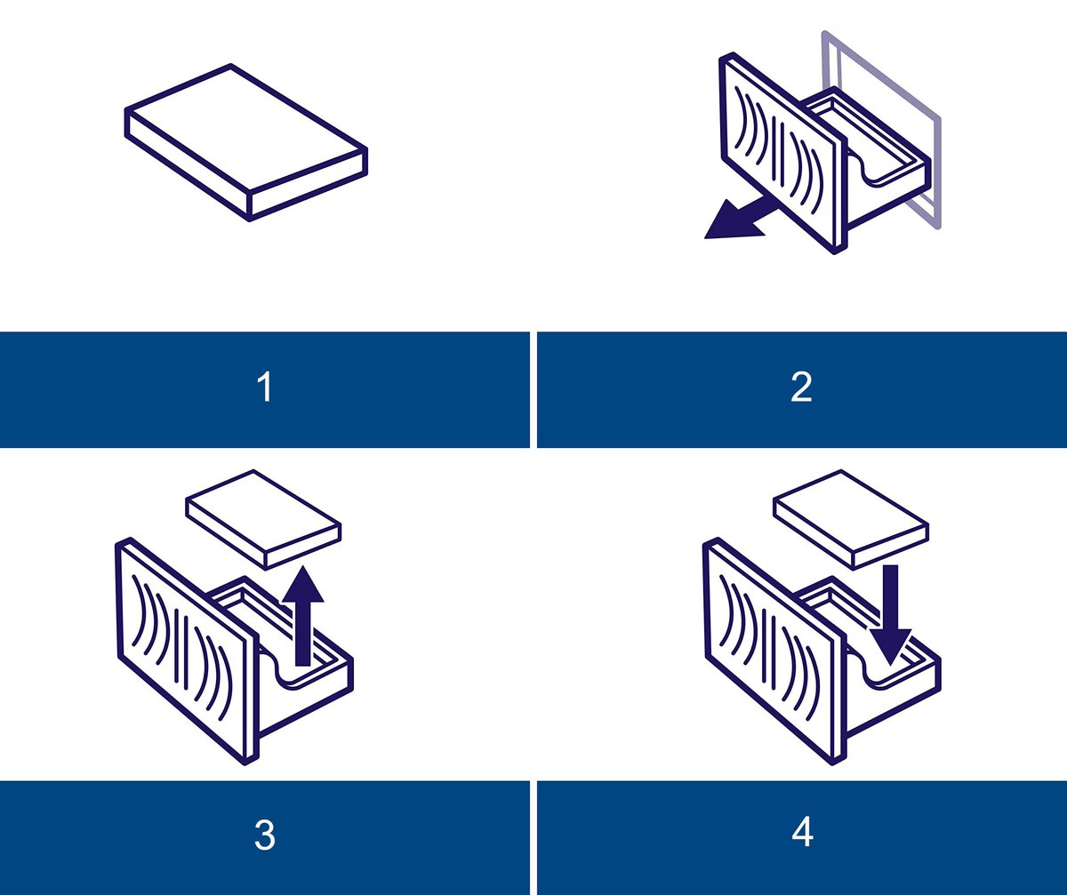 Wyjęcie oraz zainstalowanie nowego wkładu jest niezwykle intuicyjne i łatwe. Składa się na to zaledwie kilka kroków: