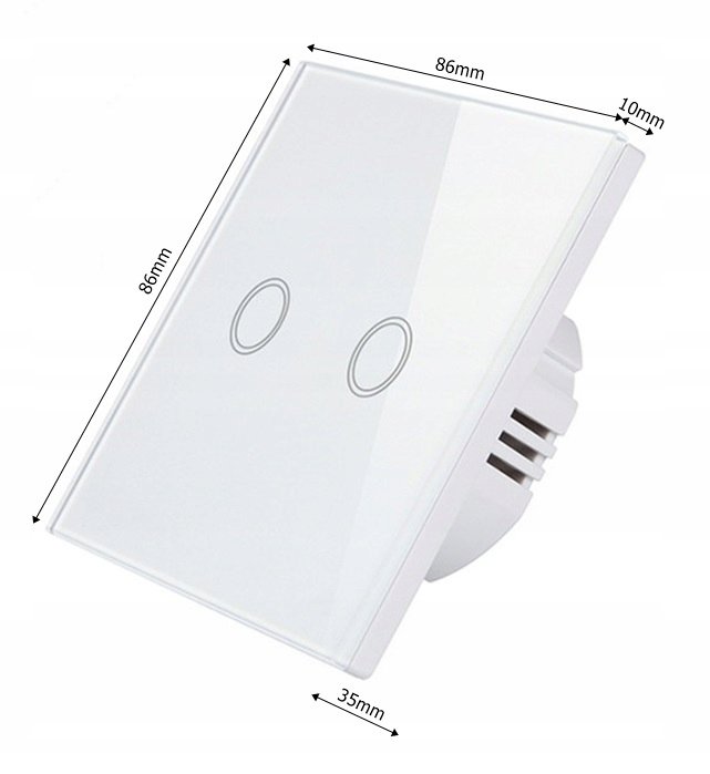 Podwójny włącznik dotykowy, szklany, biały Włącznik pasuje do standardowych puszek FI60 ⭐ Główne cechy produktu ⭐ ✔️ Szklany panel posiada kolorowe podświetlenie przycisku dotykowego. Gdy światło ...
