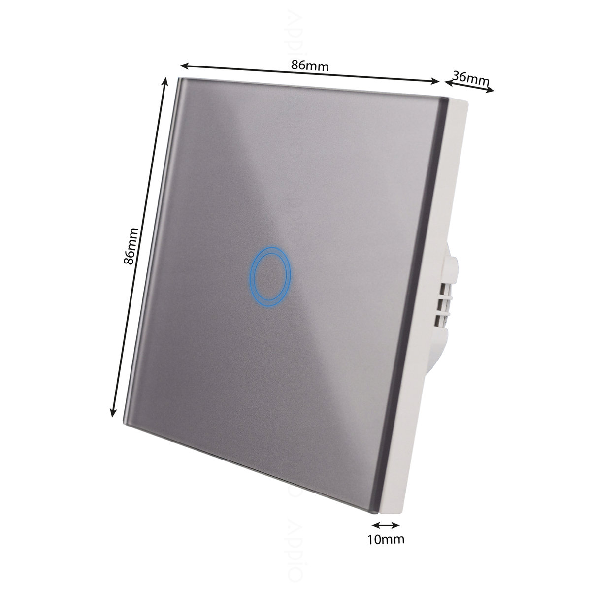 Pojedynczy włącznik dotykowy, szklany, szary Włącznik pasuje do standardowych puszek FI60 ⭐ Główne cechy produktu ⭐ ✔️ Szklany panel posiada kolorowe podświetlenie przycisku dotykowego. Gdy ...