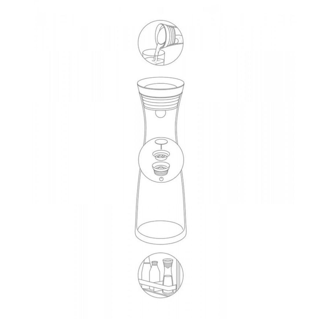 zestaw zawiera karafkę + 2 szklanki 250 ml kolor: przezroczysty, czarny materiał: silikon, stal nierdzewna, szkło pojemność karafki: 1 l wysokość: 32,7 cm gwarancja 24 miesiące