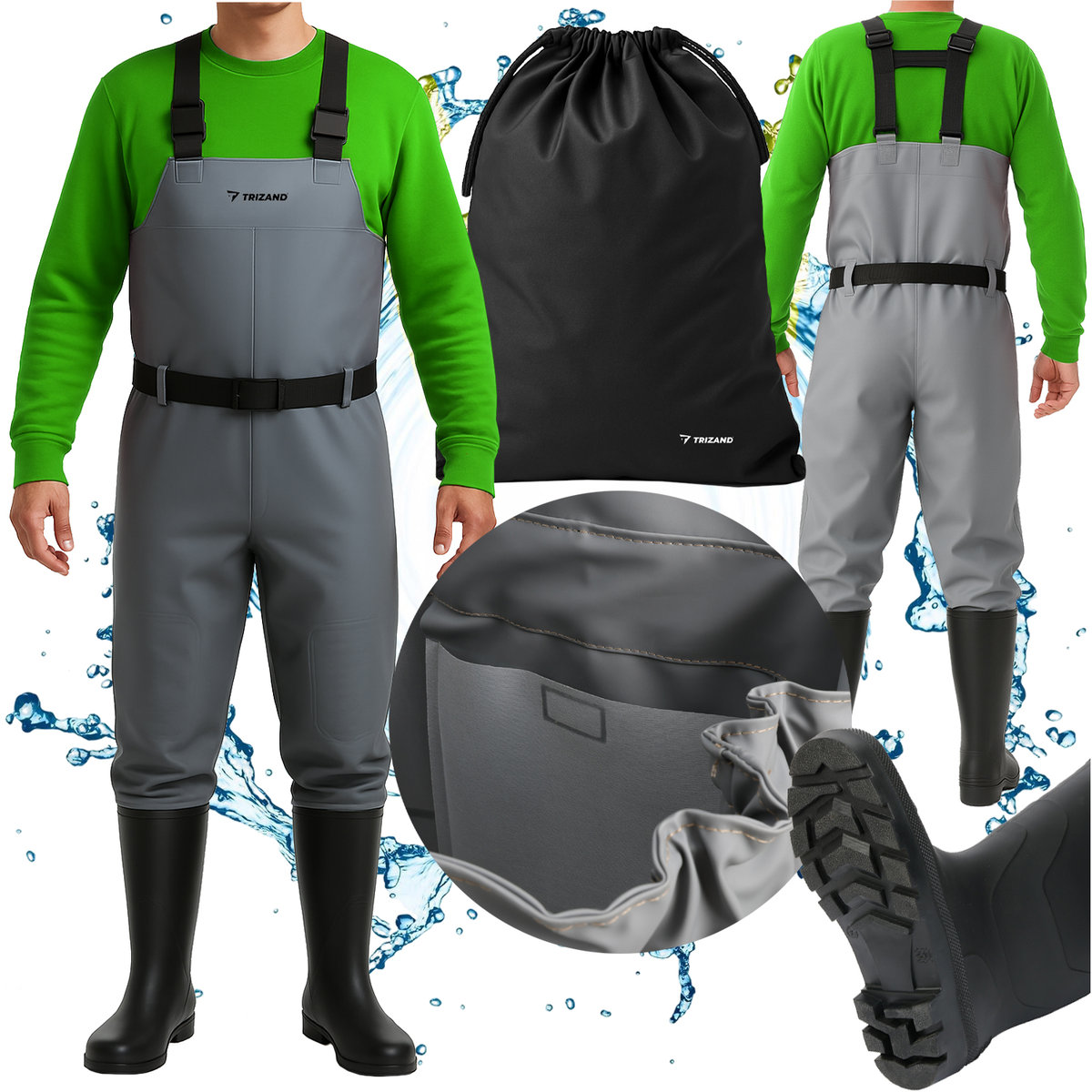 Właśnie zrecenzowałem Wodery wędkarskie spodniobuty na ryby TRIZAND gumowe spodnie grube i długie + regulowane szelki rozmiar 43!