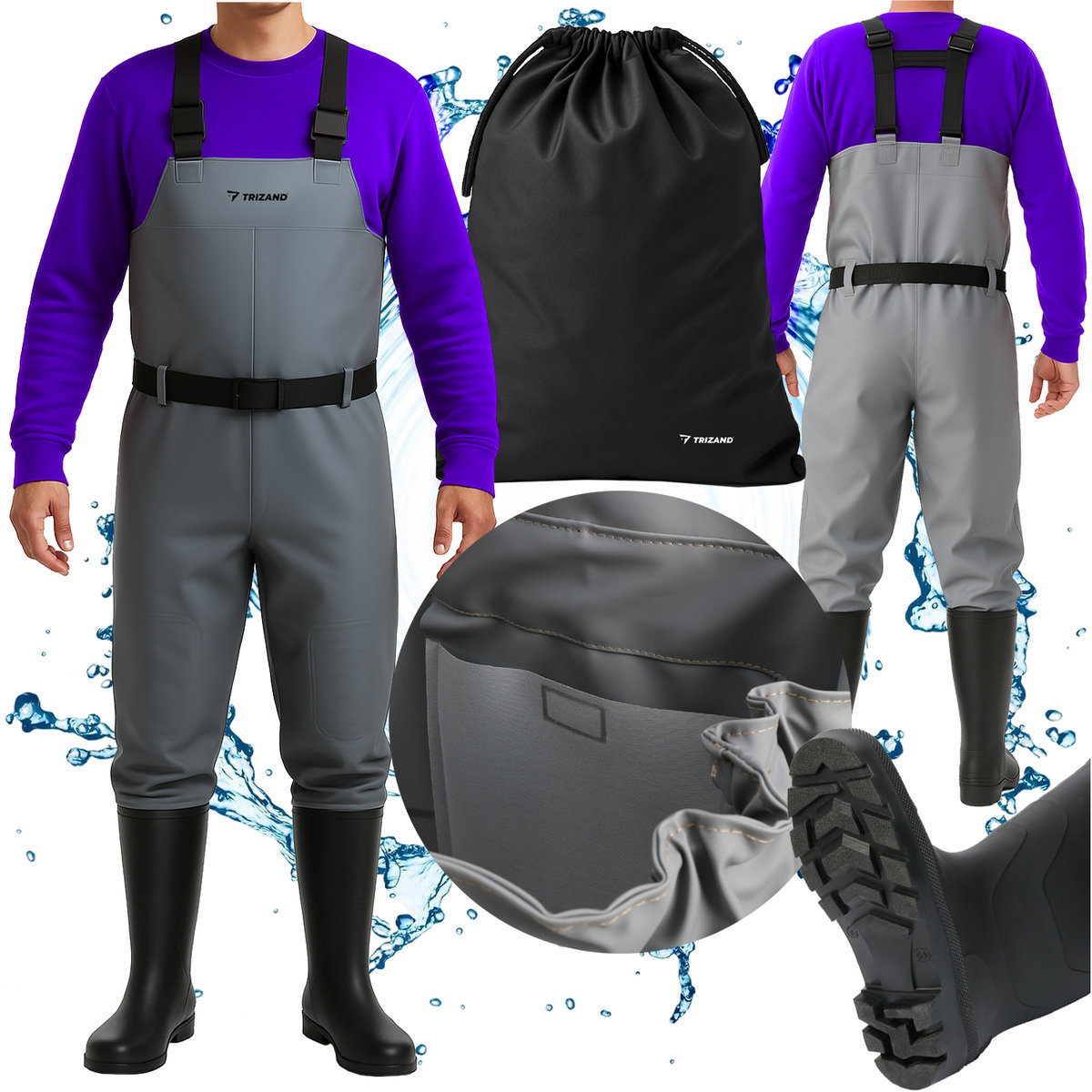 Właśnie zrecenzowałem Wodery wędkarskie spodniobuty na ryby TRIZAND gumowe spodnie grube i długie + regulowane szelki rozmiar 46!