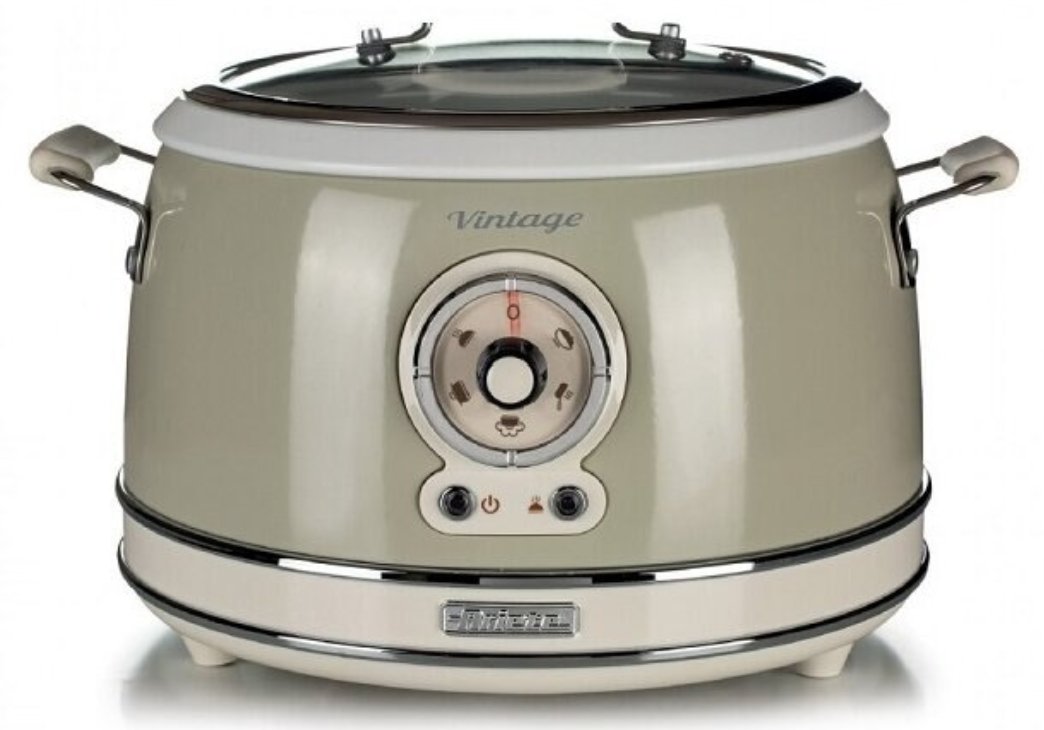 Możliwość przygotowania wielu potraw w jednym urządzeniu staje się faktem! Przedstawiamy kolejne urządzenie z wyjątkowej linii Vintage – wolnowar, garnek do ryżu, urządzenie do przygotowywania potraw sauté oraz parowar zamknięte w jednym produkcie! Wielofunkcyjny, beżowy wolnowar Ariete 2904/03 Vintage otwiera przed Tobą moc kulinarnych możliwości! Zachwyć się wolnym gotowaniem w niższych temperaturach, smaż potrawy sauté, gotuj na parze. Nie masz czasu, na zjedzenie posiłku zaraz po przygotowaniu? Dzięki funkcji podtrzymania temperatury, Twoje dania pozostaną ciepłe przez wiele godzin, nie tracąc walorów smakowych. Pokochaj to urządzenie również za łatwość przechowywania! Nie musisz już kupować wielu naczyń do przygotowywania posiłków – wystarczy jedno. To rewolucyjne urządzenie jest tak piękne, że nie będziesz chciała chować go do szafki.