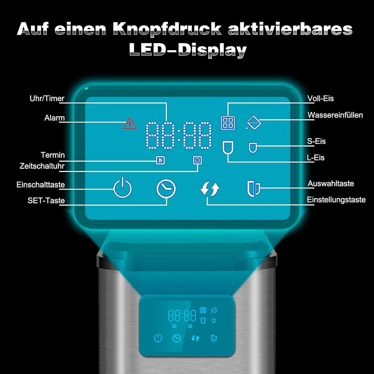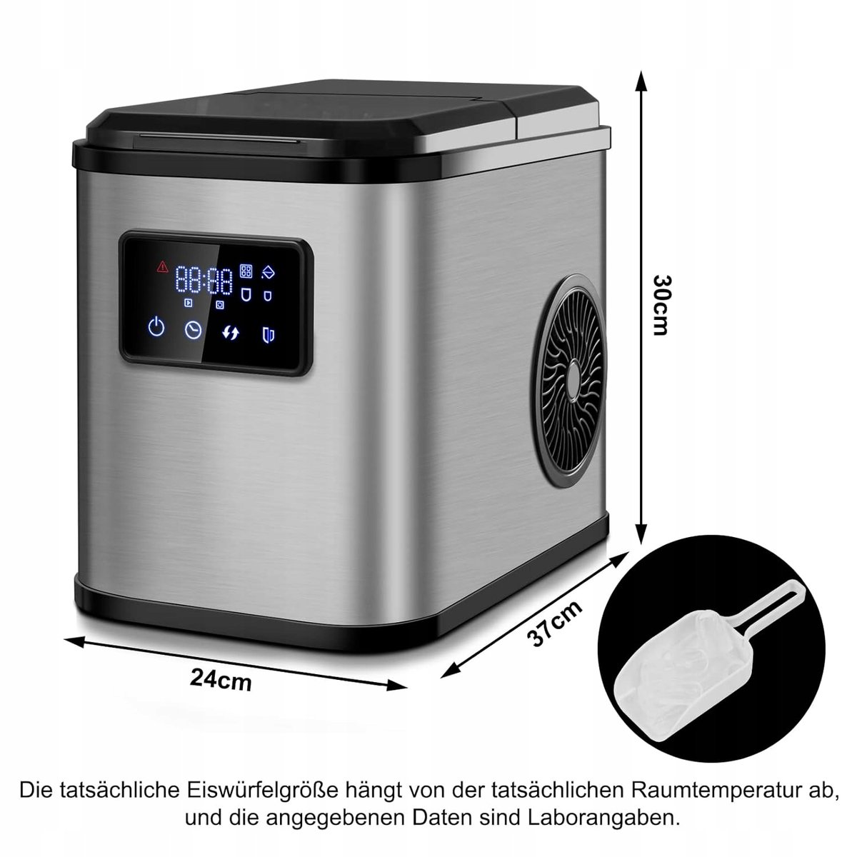 Dzięki timerowi, który trwa od 1 min. do 12 godz. możliwość regulacji, można z wyprzedzeniem zaplanować produkcję lodu i indywidualnie dopasować czas początkowy