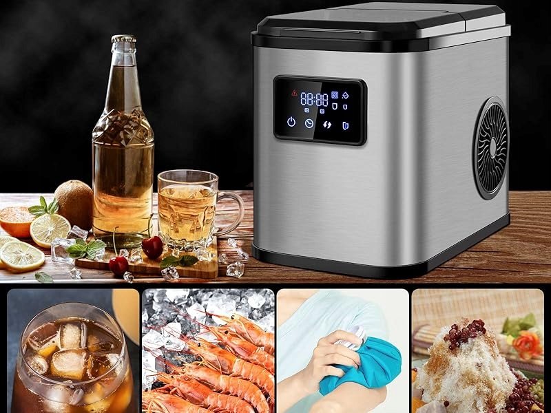 Wydajność – 9 kostek lodu w formie bulletu na 9,5 min. i 12-15 kg na 24 godziny, idealny na małe imprezy ogrodowe lub koktajlowe.