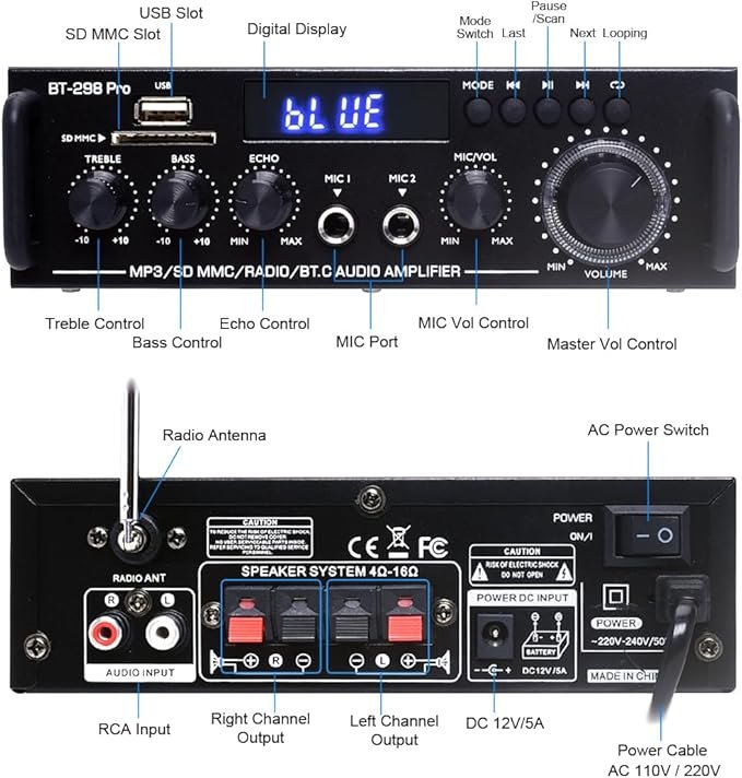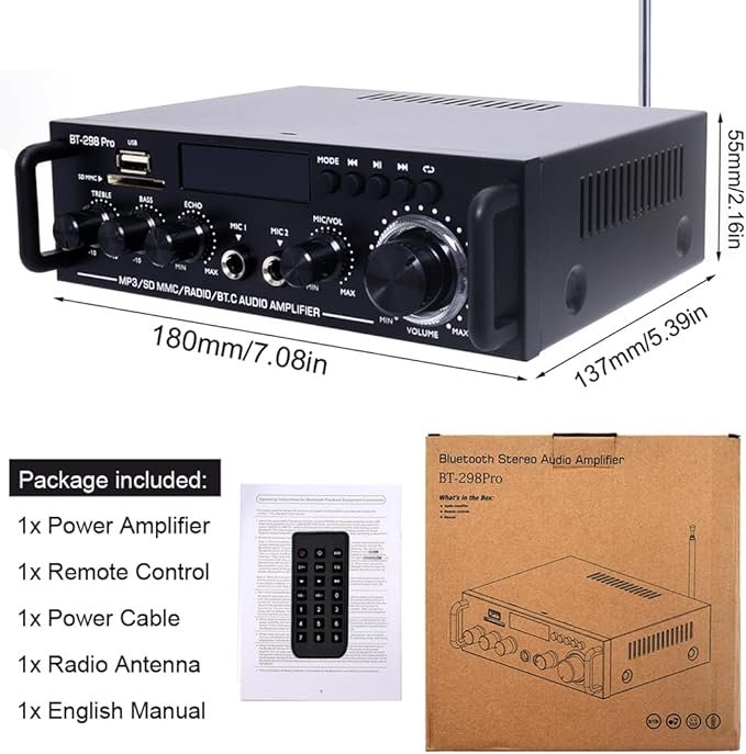 Nie czekaj dłużej na idealne brzmienie! Zainwestuj w wzmacniacz stereo Bluetooth Woopker BT-298 Pro i przekonaj się, jak niesamowity dźwięk może odmienić Twoje doświadczenia muzyczne. Ciesz się komfortem i jakością oraz zaprojektuj własny system audio dostosowany do Twojego stylu życia.