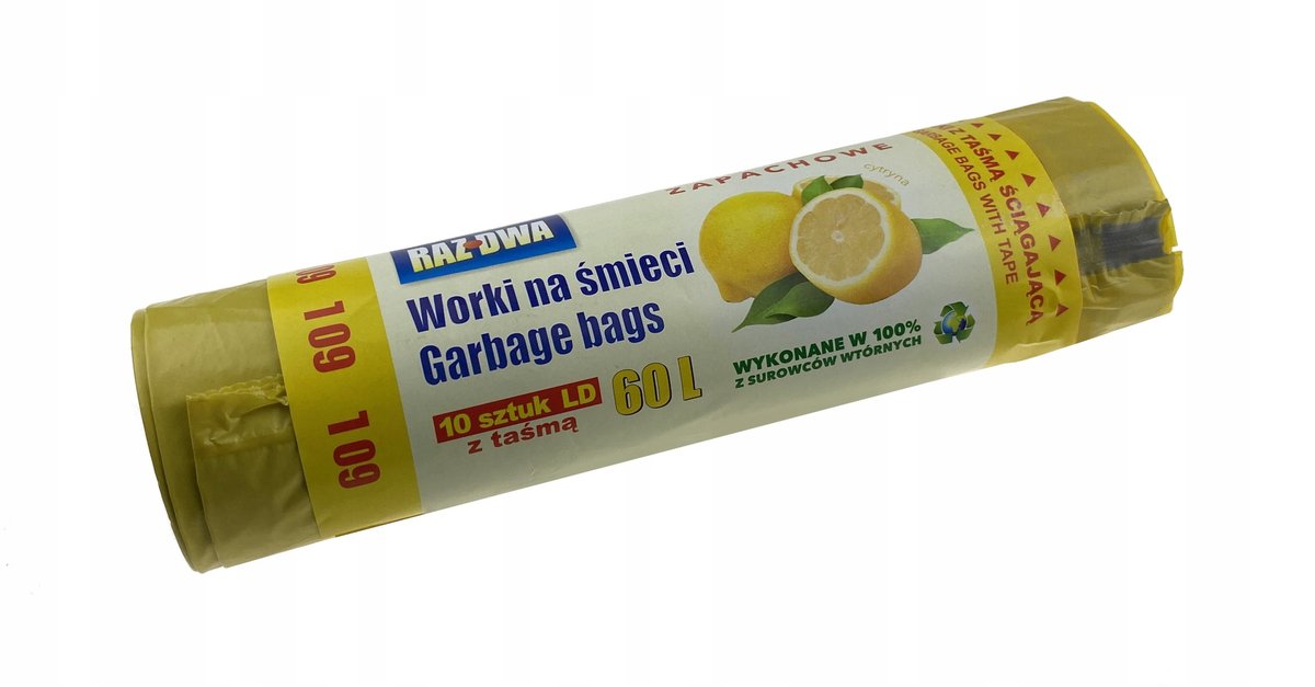 | Nazwa: | Worki na śmieci 60L zapachowe Z TAŚMĄ żółte 10 szt. (1 rolka) cytryna |