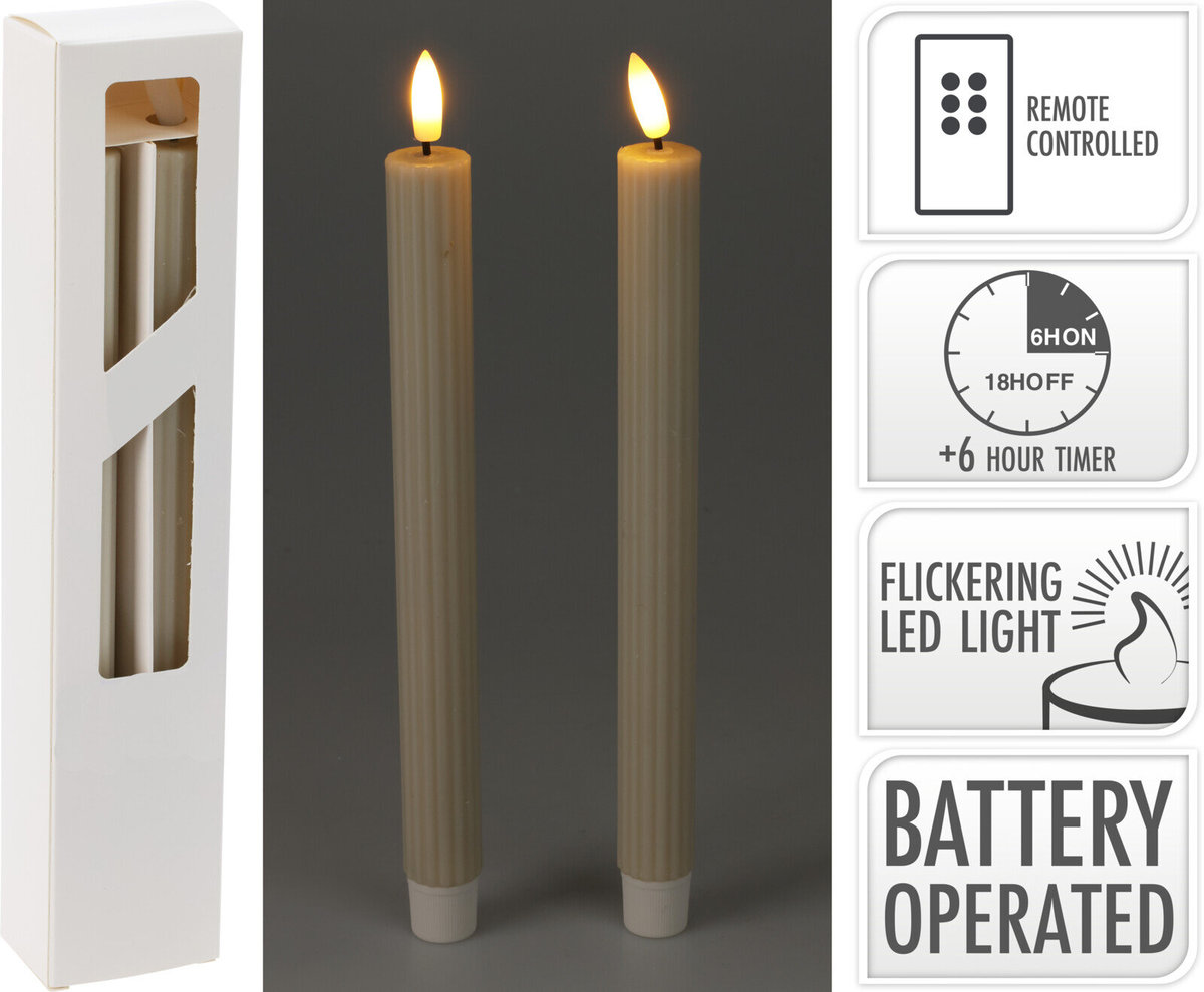 Woskowane świece led z pilotem 25 cm beżowe - elegancki design i bezpieczeństwo użytkowania w jednym Elegancki design: Woskowane świece stołowe z LED o wysokości 25 cm w kolorze beżowym ...