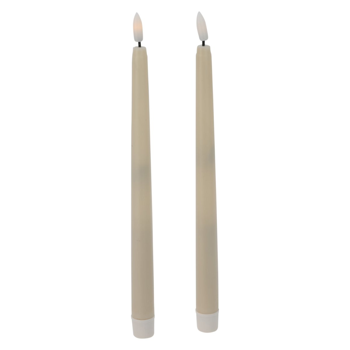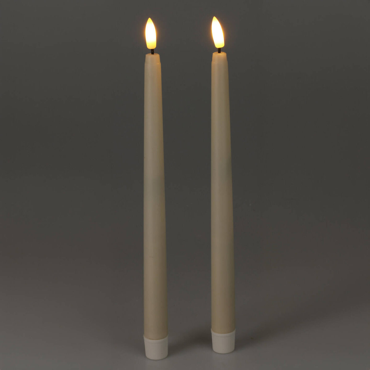 Elegancki design: Woskowane świece stołowe z LED o wysokości 27 cm w kolorze beżowym dodają subtelnego uroku każdemu wnętrzu. Ich klasyczny kształt sprawia, że idealnie wpasują się w różnorodne aranżacje.