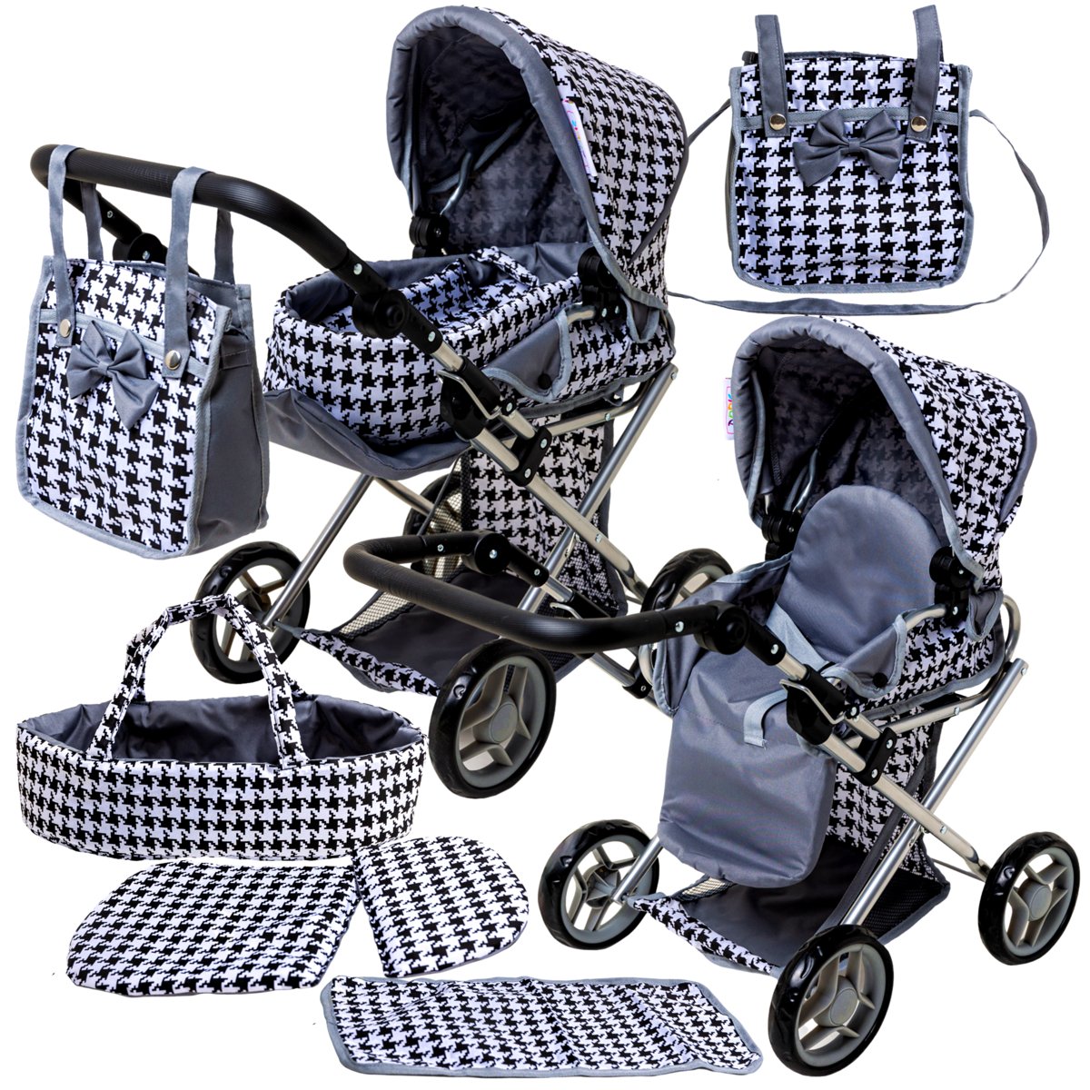 Wózek dla lalek 3w1 GONDOLA + SPACERÓWKA pościel torba przewijak dla lali Baterie nie wymaga