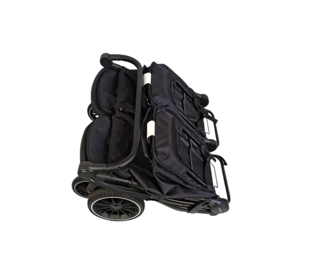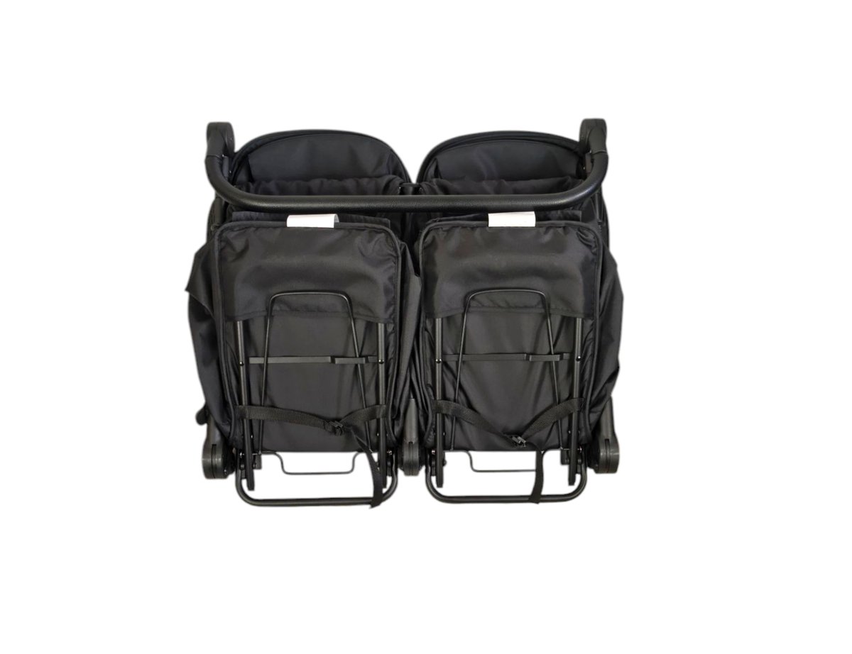 Wózek waży tylko 14,75kg i niezwykle łatwo składa się do niewielkich rozmiarów jak na wózek bliźniaczy. Dzięki temu jest szansa, że nie będziesz musiał(a) zmieniać samochodu na dużo większy. Całość zabezpieczy system blokady przed samoczynnym otwarciem.