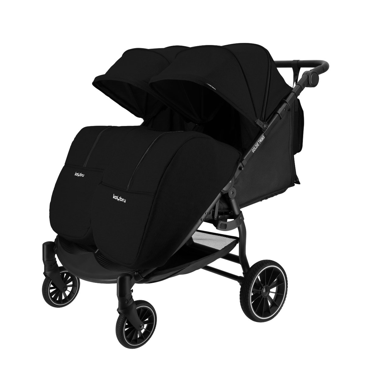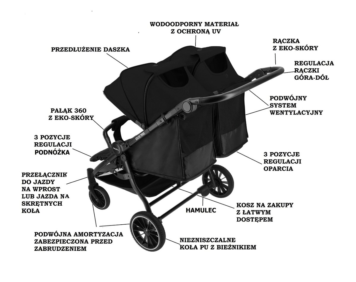 Wózek spacerowy dla bliźniaków KacBru GOLDIE TWINS Czarny Bogate Wyposażenie