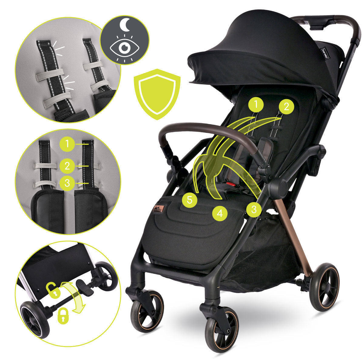 ✔️Auto-folding - Wygodny system składania jedną ręką do kompaktowych rozmiarów. ✔️Lekka konstrukcja - wózek łatwy w transporcie i przenoszeniu. ✔️Wysokiej jakości powlekana rama ✔️Siedzisko wózka wykonane z wygodnej, miękkiej pianki - zapewnia dziecku komfort podczas każdej podróży. ✔️Duży kosz na zakupy - przestronny i praktyczny zapewnia wystarczającą ilość miejsca na zakupy oraz niezbędne akcesoria podczas spaceru. Kosz jest solidnie przymocowany do wózka, wytrzymały i trwały – wykonany z wysokiej jakości mate