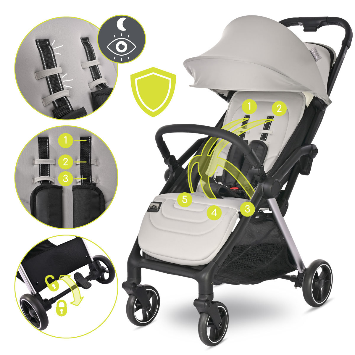 ✔️Auto-folding - Wygodny system składania jedną ręką do kompaktowych rozmiarów. ✔️Lekka konstrukcja - wózek łatwy w transporcie i przenoszeniu. ✔️Wysokiej jakości powlekana rama ✔️Siedzisko wózka wykonane z wygodnej, miękkiej pianki - zapewnia dziecku komfort podczas każdej podróży. ✔️Duży kosz na zakupy - przestronny i praktyczny zapewnia wystarczającą ilość miejsca na zakupy oraz niezbędne akcesoria podczas spaceru. Kosz jest solidnie przymocowany do wózka, wytrzymały i trwały – wykonany z wysokiej jakości mate