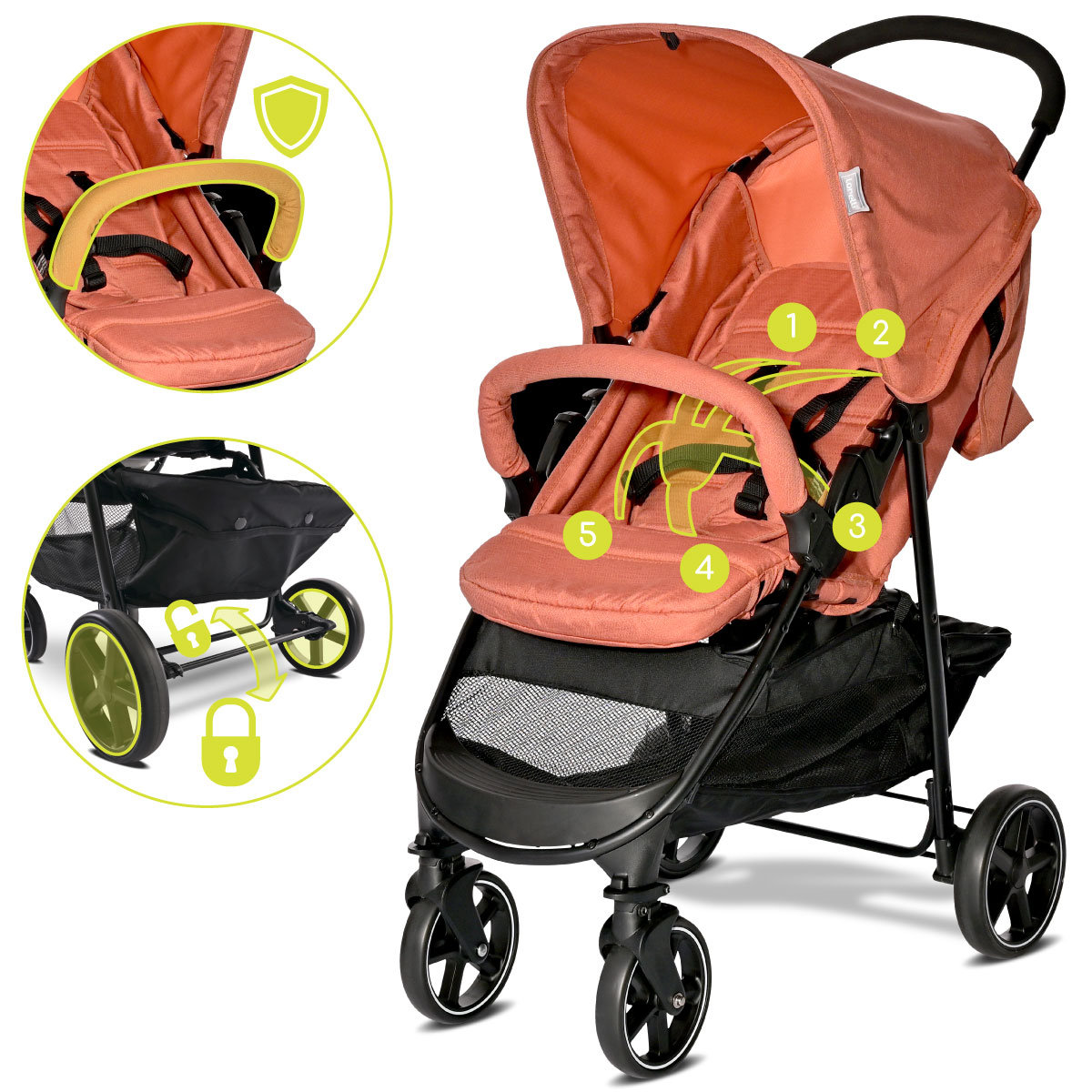 Wózek spacerowy spacerówka lekka podręczna Lorelli Rome pomarańczowa Ginger