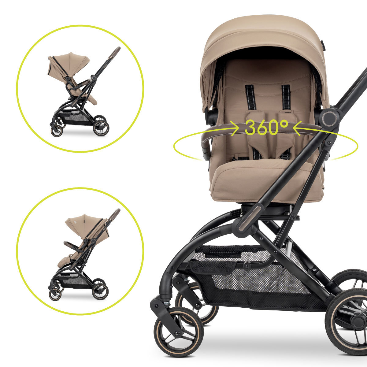 ❇️Siedzisko możesz obrócić w dowolnym momencie – twarzą do rodzica lub do kierunku jazdy. Dzięki temu zachowujesz kontakt wzrokowy albo dajesz maluchowi widok na świat, bez przepinania pasów czy ramy ❇️Zmiana kierunku odbywa się w bardzo prosty sposób - przesuwasz blokadę i obracasz!