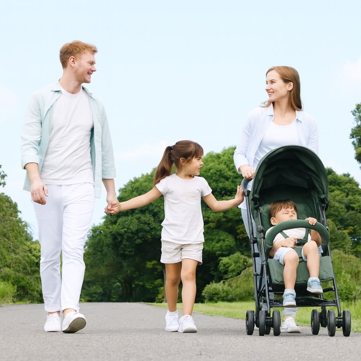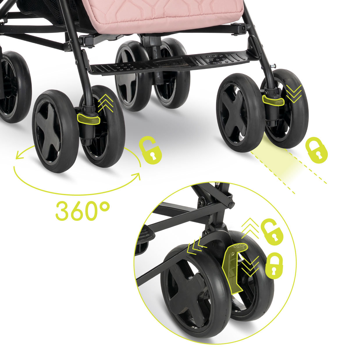 ❇️ Mechanizm składania wózka to mechanizm klasycznej parasolki – zajmuje niewiele miejsca i pozwala łatwo transportować wózek do domu, w podróży czy schować do bagażnika.Składanie typu parasolka