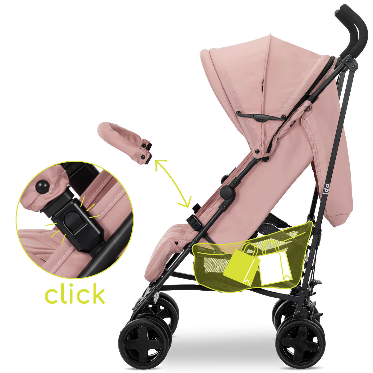 Lorelli IDA to poręczny wózek spacerowy, który idealnie sprawdzi się od około 6 miesiąca życia dziecka aż do 15 kg. Dzięki niskiej wadze, łatwemu składaniu, regulowanym oparciu i podnóżkowi zapewnia komfort zarówno maluszkowi, jak i komfort dla rodzica podczas miejskich spacerów.Lorelli IDA – świetnie wyposażona spacerówka parasolka