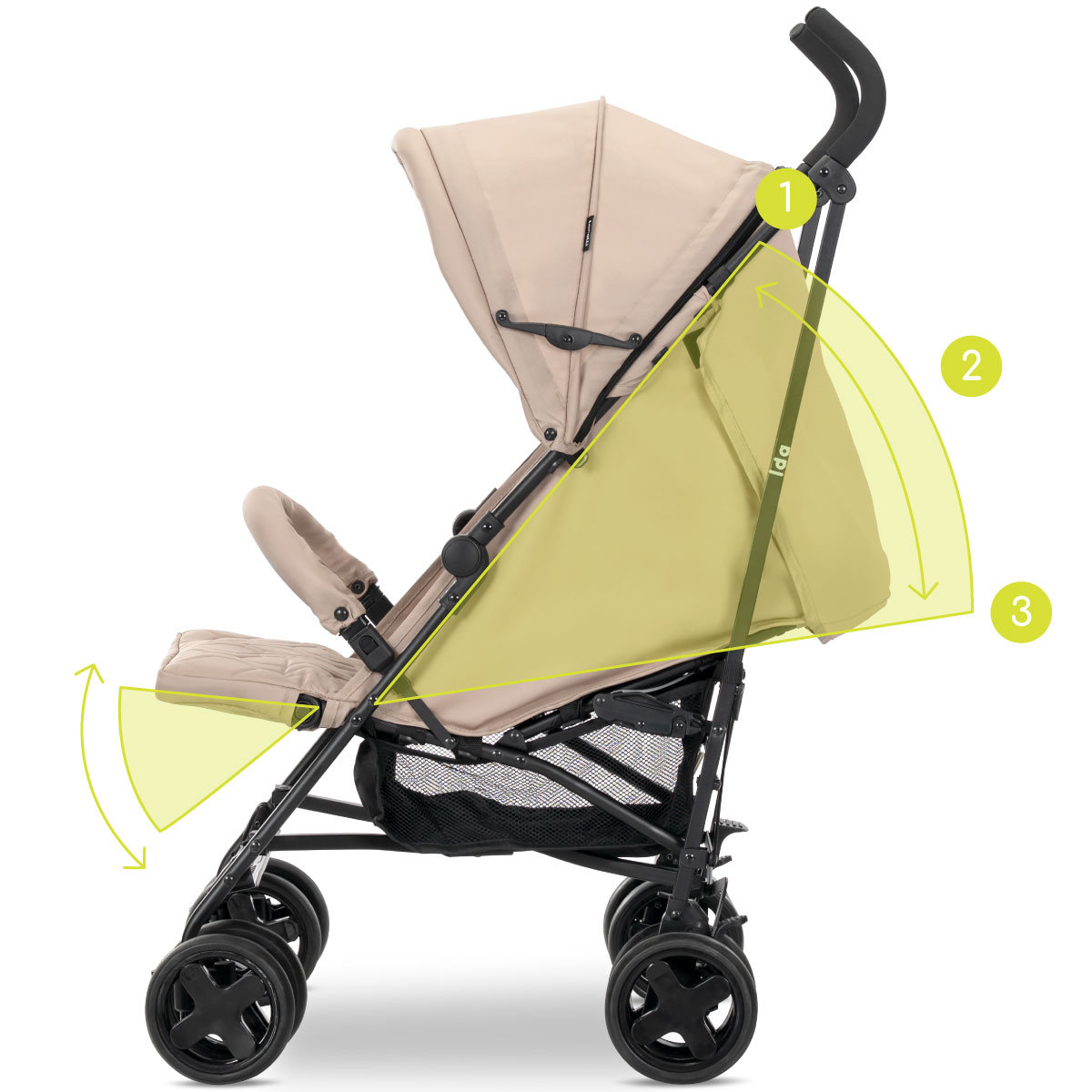 ❇️Wózek oferuje trzy pozycje oparcia, w tym leżącą – umożliwiając dziecku wygodne drzemki podczas spacerów. ❇️ Regulacja odbywa się za pomocą prostych przycisków z boku siedziska.Regulowane oparcie w 3 pozycjach