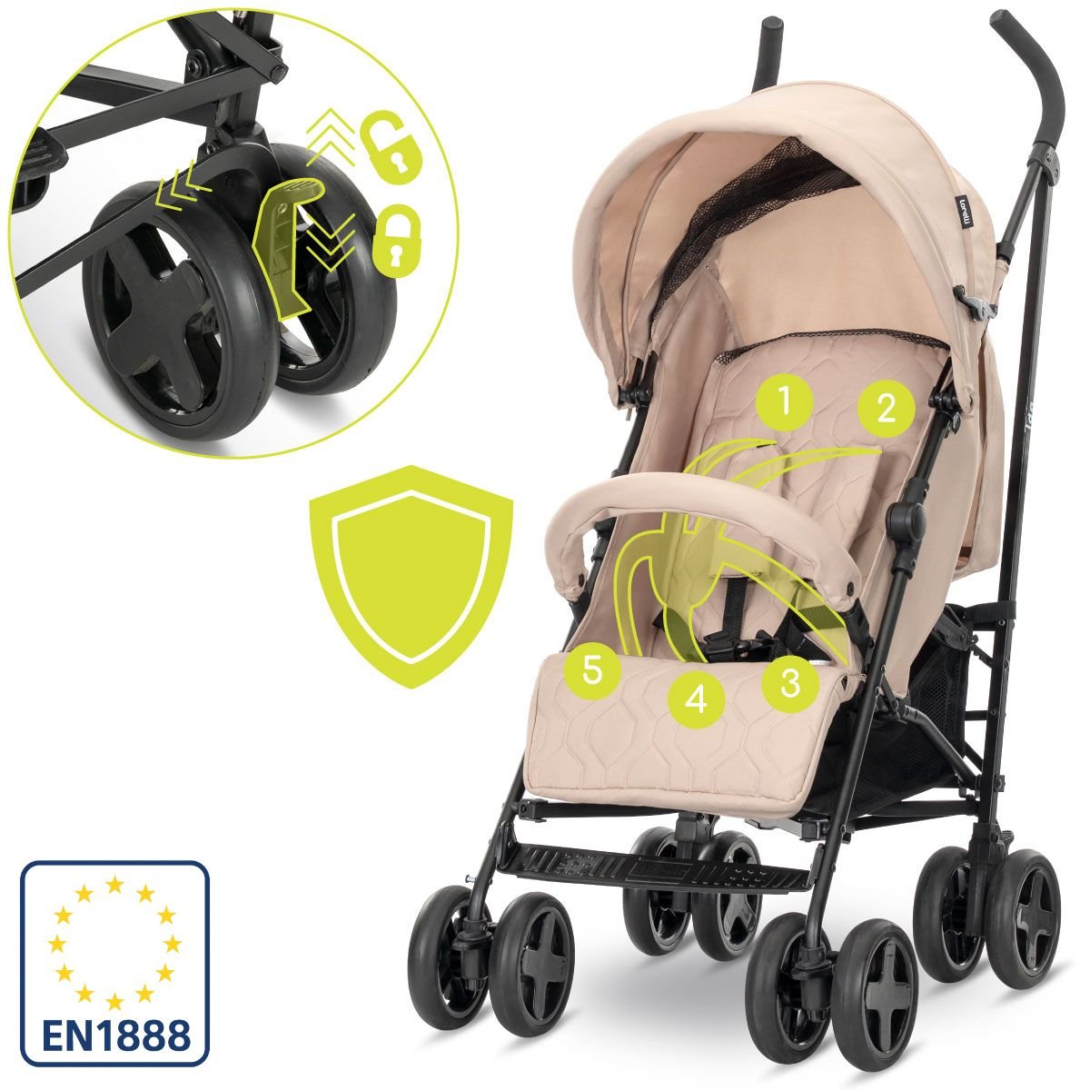 ❇️ Mechanizm składania wózka to mechanizm klasycznej parasolki – zajmuje niewiele miejsca i pozwala łatwo transportować wózek do domu, w podróży czy schować do bagażnika.Składanie typu parasolka