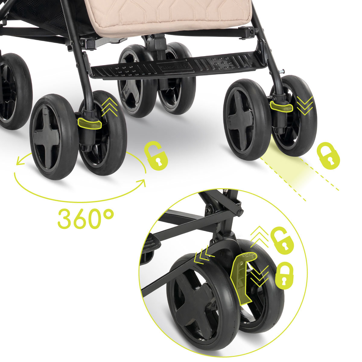 ❇️ Obrotowe koła przednie ułatwiają manewrowanie w sklepach czy na chodnikach, z opcją blokady kierunku dla stabilności na prostych trasach.Przednie koła 360° z blokadą