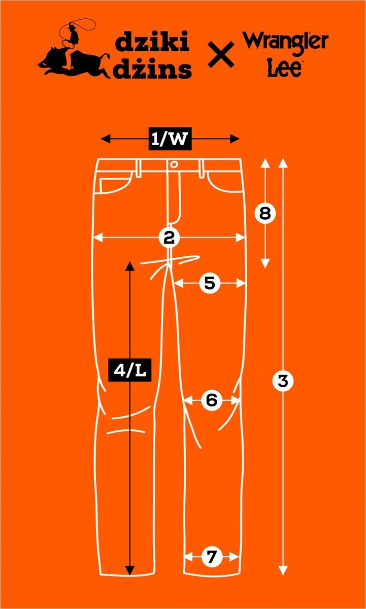 JAK MIERZYĆ? Porównaj wymiary z własnymi, dobrze dopasowanymi spodniami. Rozłóż ubranie na płaskiej powierzchni, zapięte, z równo schodzącym się przodem i tyłem. W pierwszej kolejności sprawdź szerokość pasa 1 / W oraz długość wewnętrzną nogawki 4 / L. Wartości te odpowiadają rozmiarowi spodni podanych w calach na metce W / L (waist / lenght). Pozostałe wymiary są pomocnicze. Nie porównuj wymiarów na ciele, wówczas jest duże ryzyko błędu.