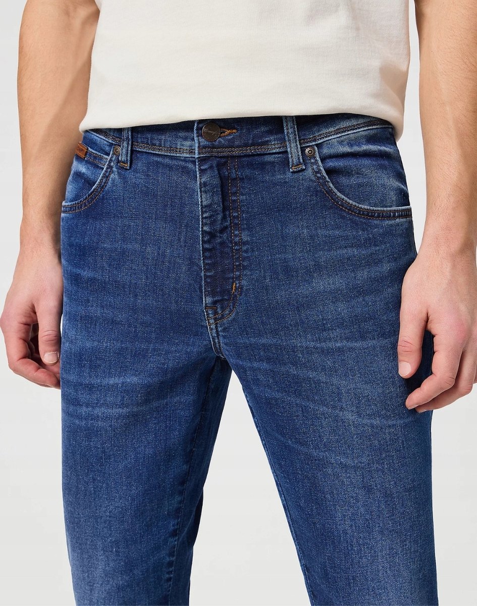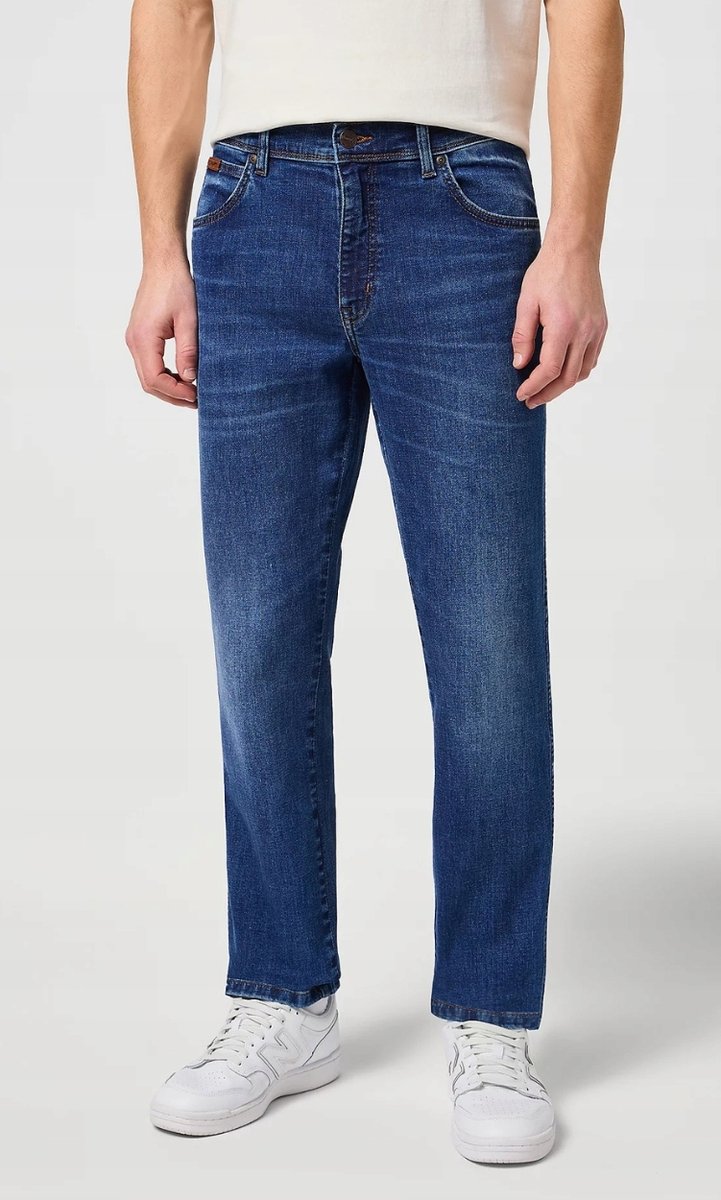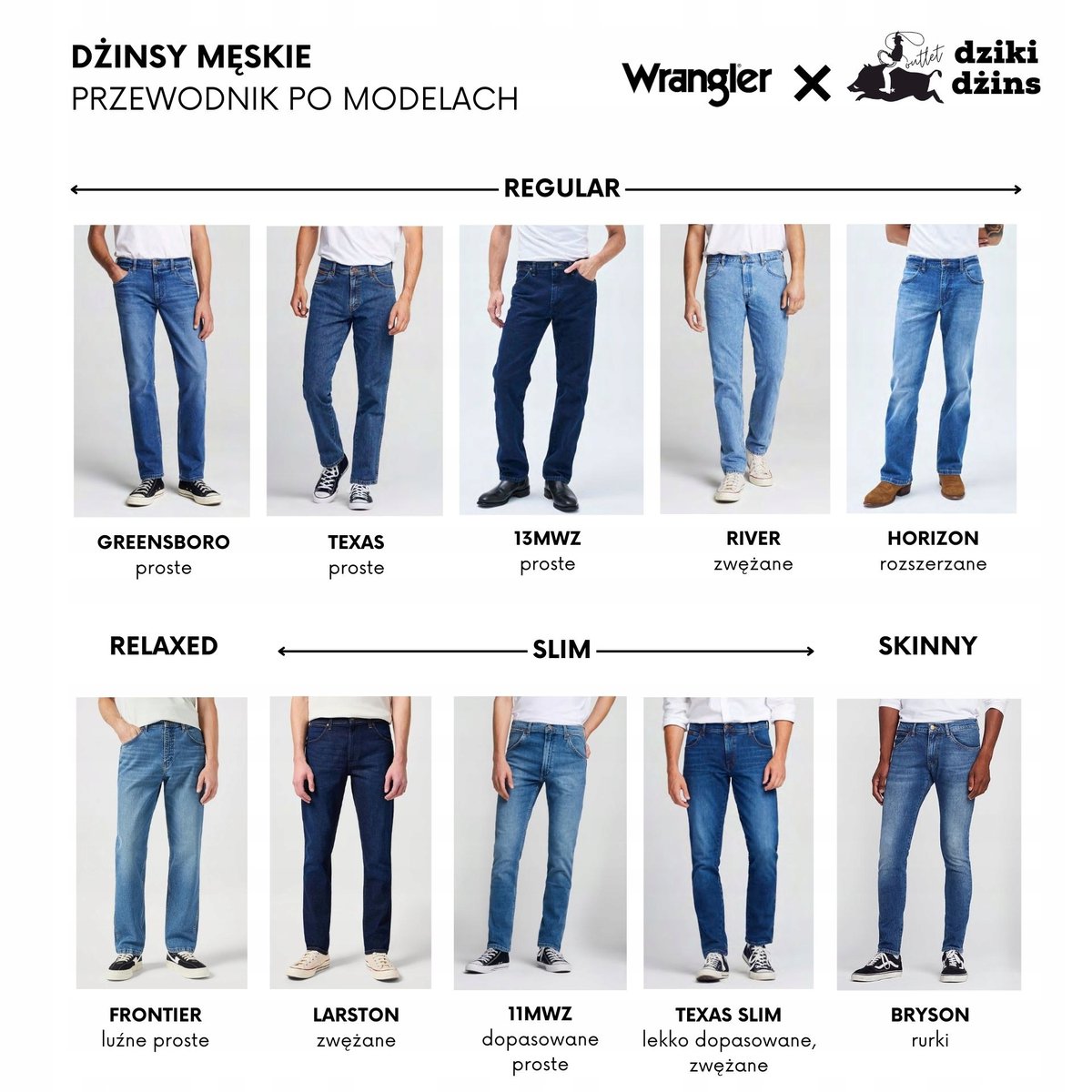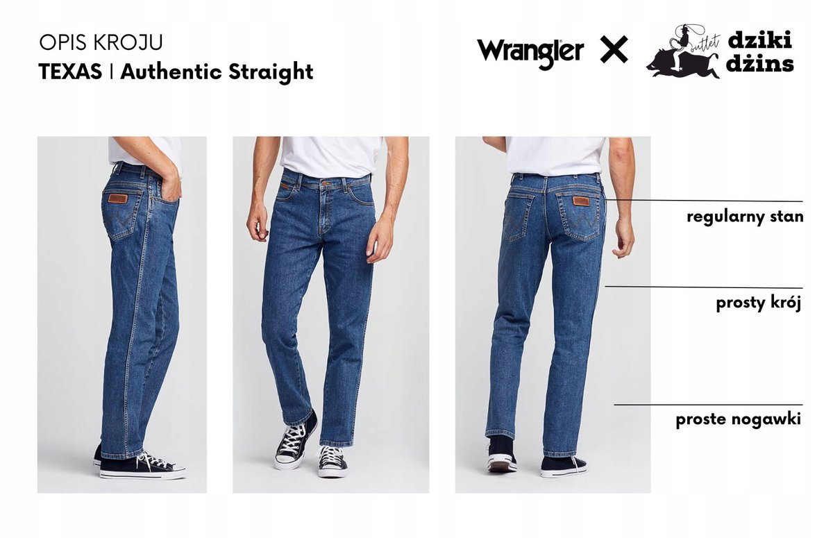 █ Wrangler Texas Authentic Straight 1123 52 531 Dean █Męskie jeansy firmy WranglerModel Texas, authentic straight z kolekcji We Care, WranglerZapinane na zamek i metalowy, sygnowany ...