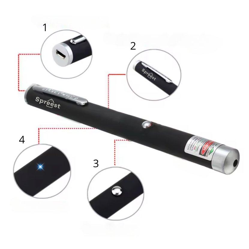 Przedstawiamy wskaźnik laserowy marki Spreest — idealne narzędzie do prowadzenia prezentacji, zabawy z pupilem oraz wielu innych zastosowań. Ten kompaktowy i lekki laser łączy w sobie wysoką jakość wykonania z prostotą obsługi, stając się nieodzownym elementem Twojego codziennego życia.