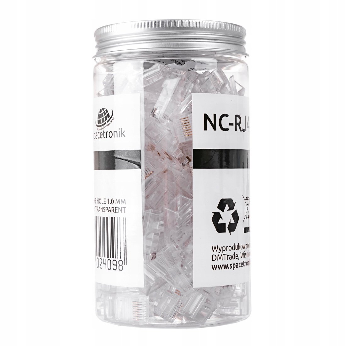 Przedmiotem sprzedaży jest: NC-RJ455UT-0; Wtyk RJ45 kat. 5e UTP NC-RJ455UT-0 100szt.Wtyk RJ45 CAT5e UTP Spacetronik (przezroczysty) - 100 szt. Zestaw 100 szt. standardowych ośmiostykowych wtyków RJ45