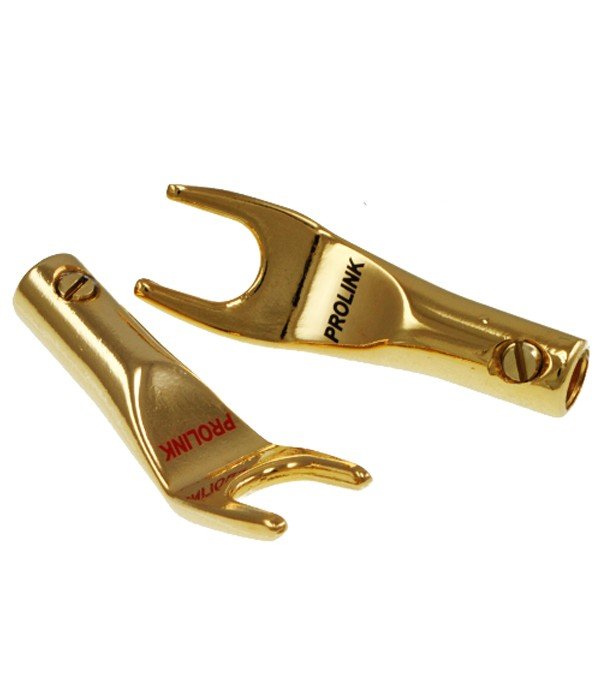Wtyk widełkowy TSP080 Prolink Premium stosowany jako zakończenie przewodu głośnikowego w wysokiej klasy zestawach audio stereo oraz kina domowego.