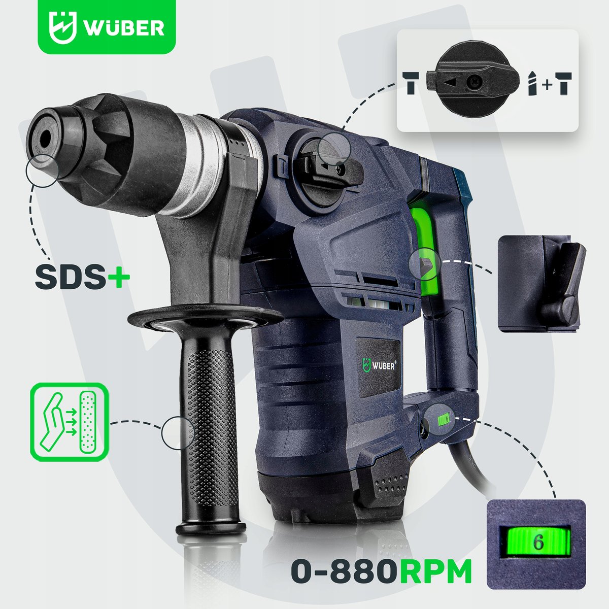✅ Głowica SDS+ - szybko i bez problemu wymienisz wiertła i dłuta.